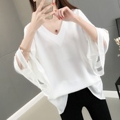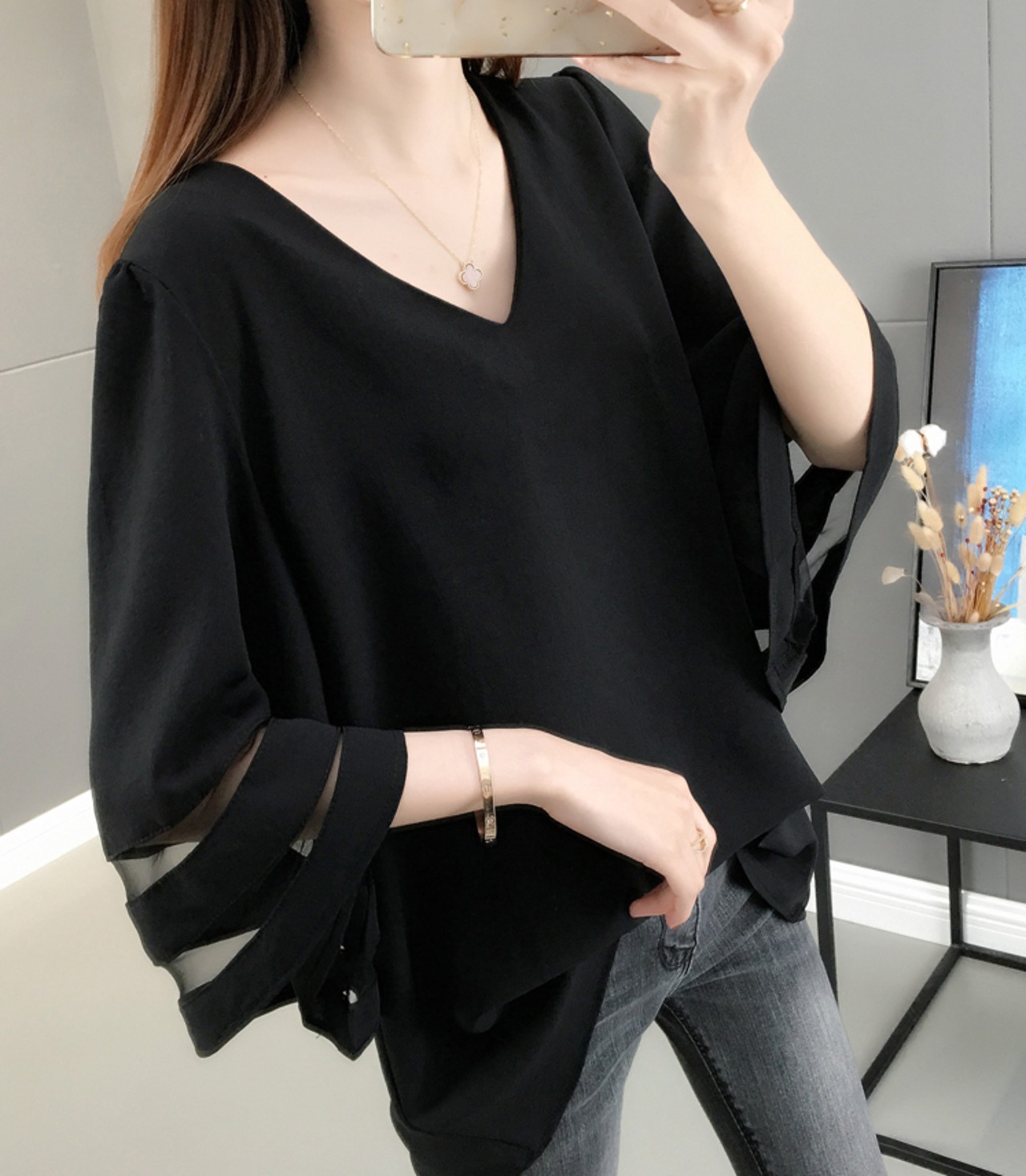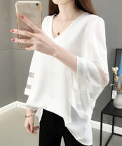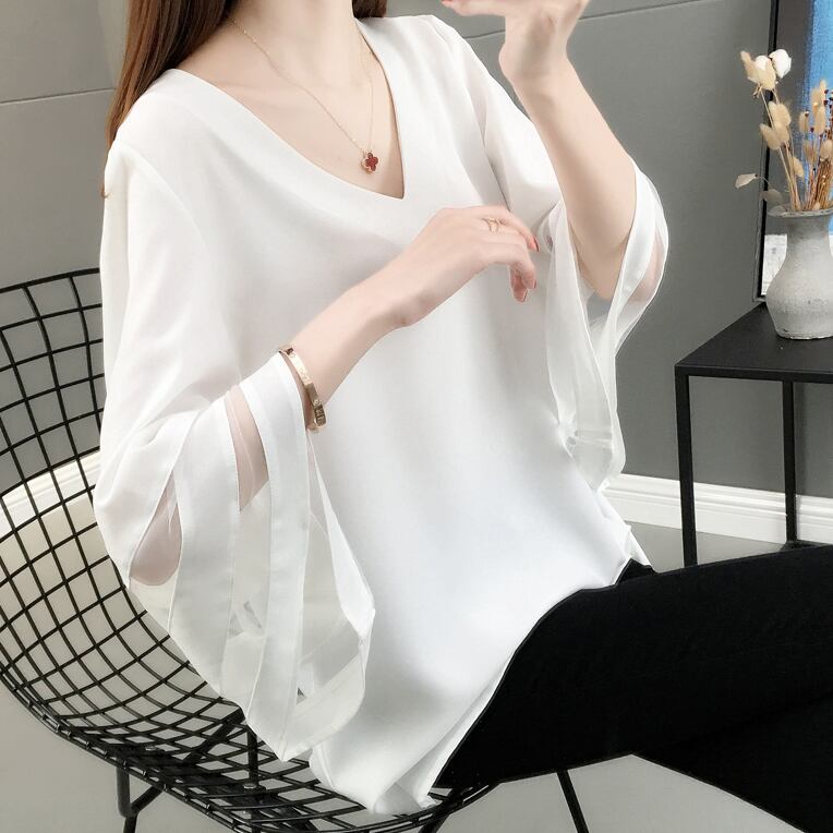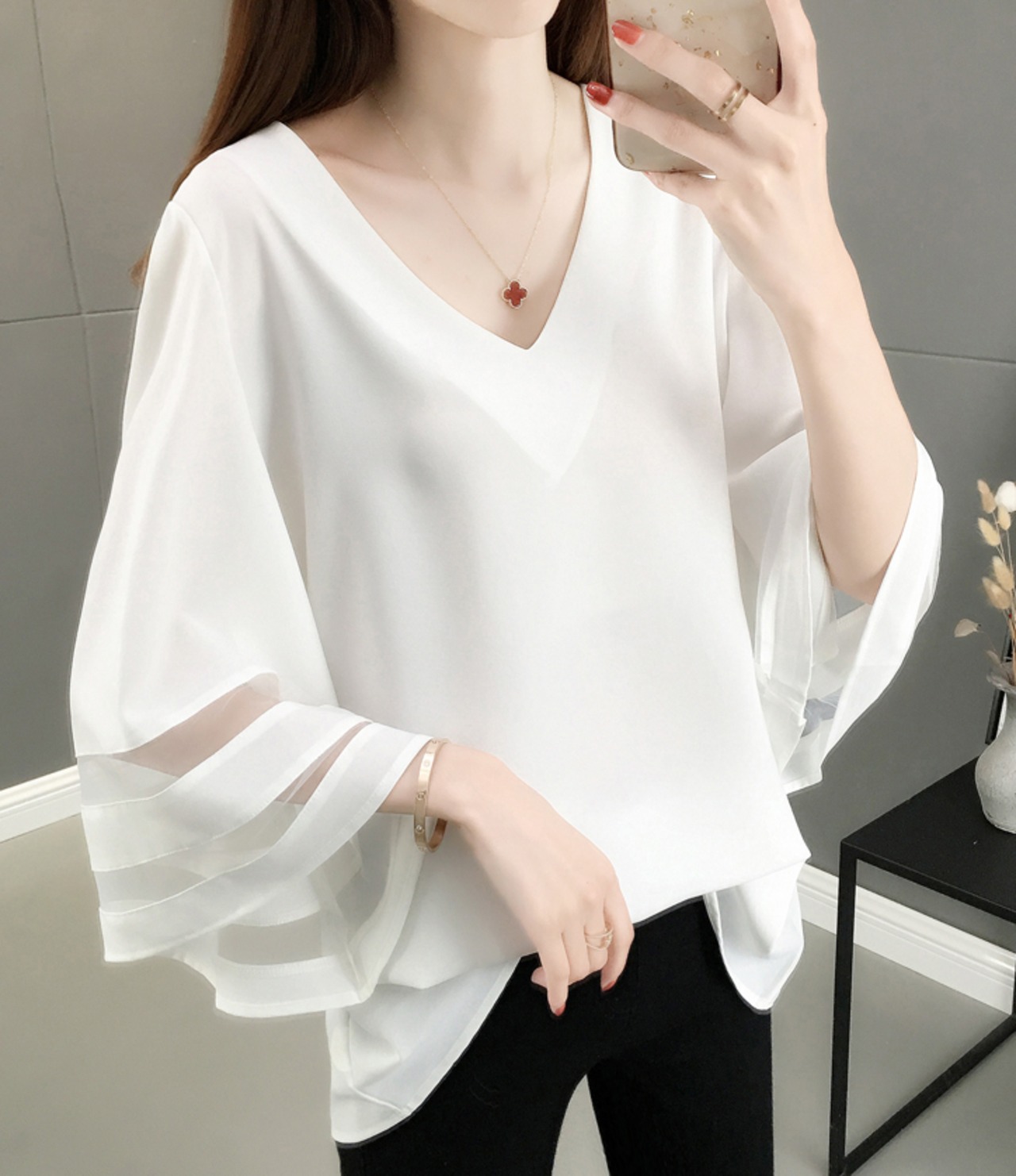 Tシャツ カットソー 七分袖 フレアスリーブ フィッシュテール ワイド 切り替えデザイン シフォン 透け感 かわいい 大人可愛い きれいめ シンプル カジュアル 大人 上品 おしゃれ かっこいい 大人カジュアル 大人女子 こなれ感 クール 存在感 とろみ感 抜け感 シック 春 夏 レディース オフィス OL 通勤 学生 通学 デート お出かけ 公園デビュー 女子会 お泊まり 旅行 リモート会議 着回し 普段使い 重ね着 美デコルテ デイリー コーデ きちんと感 日常使い 休日