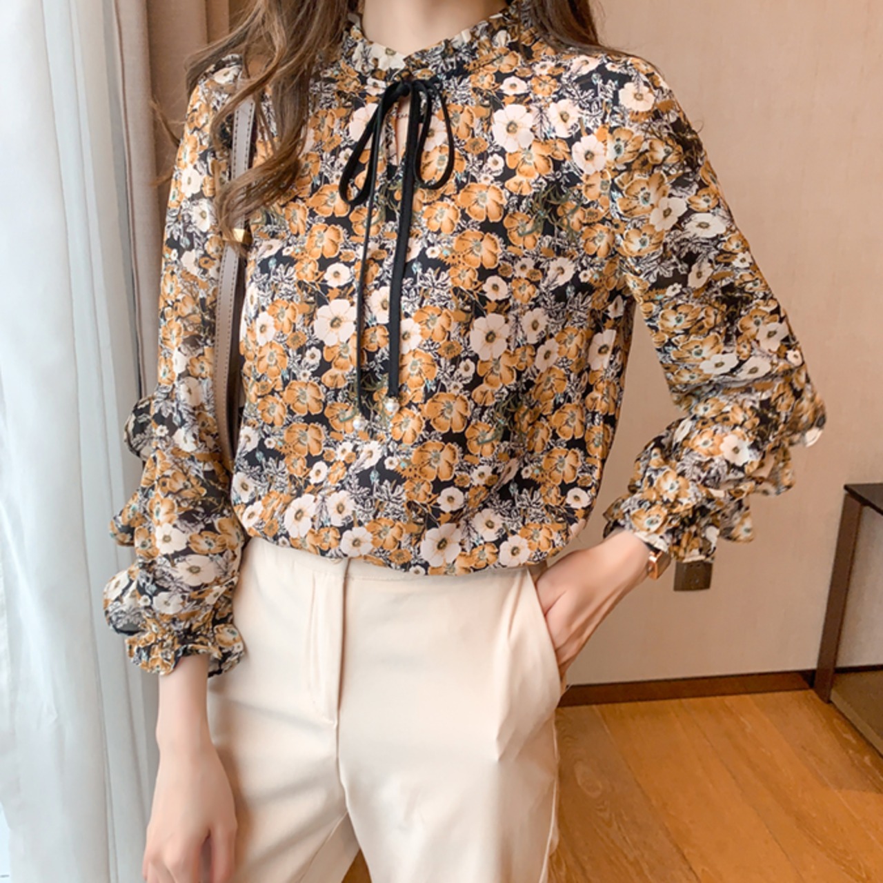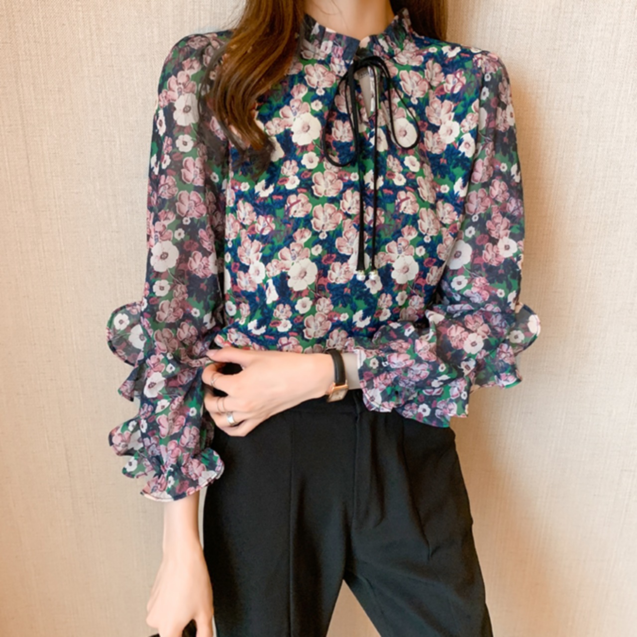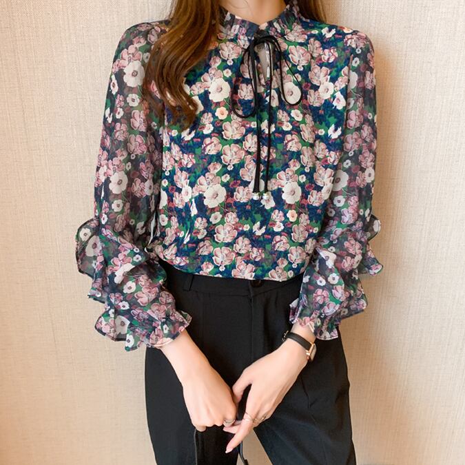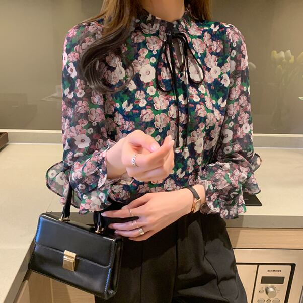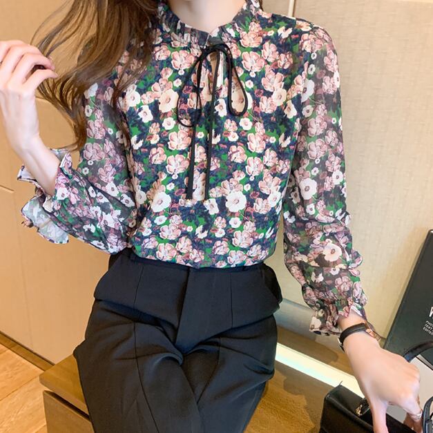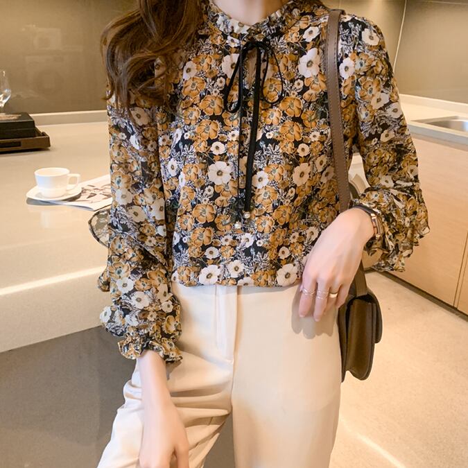 シャツ ブラウス 長袖 リボンタイ バンドカラー シフォン リボン 透け感 薄手 花柄 フラワー かわいい 大人可愛い きれいめ シンプル カジュアル 大人 上品 おしゃれ レトロ 大人カジュアル 大人女子 こなれ感 ラブリー キュート ガーリー フェミニン エレガント 存在感 とろみ感 抜け感 シック ナチュラル 春 夏 秋 レディース OL 通勤 学生 通学 デート お出かけ 公園デビュー 女子会 お泊まり 旅行 着回し 普段使い 重ね着 デイリー コーデ モテ きちんと感 日常使い 休日