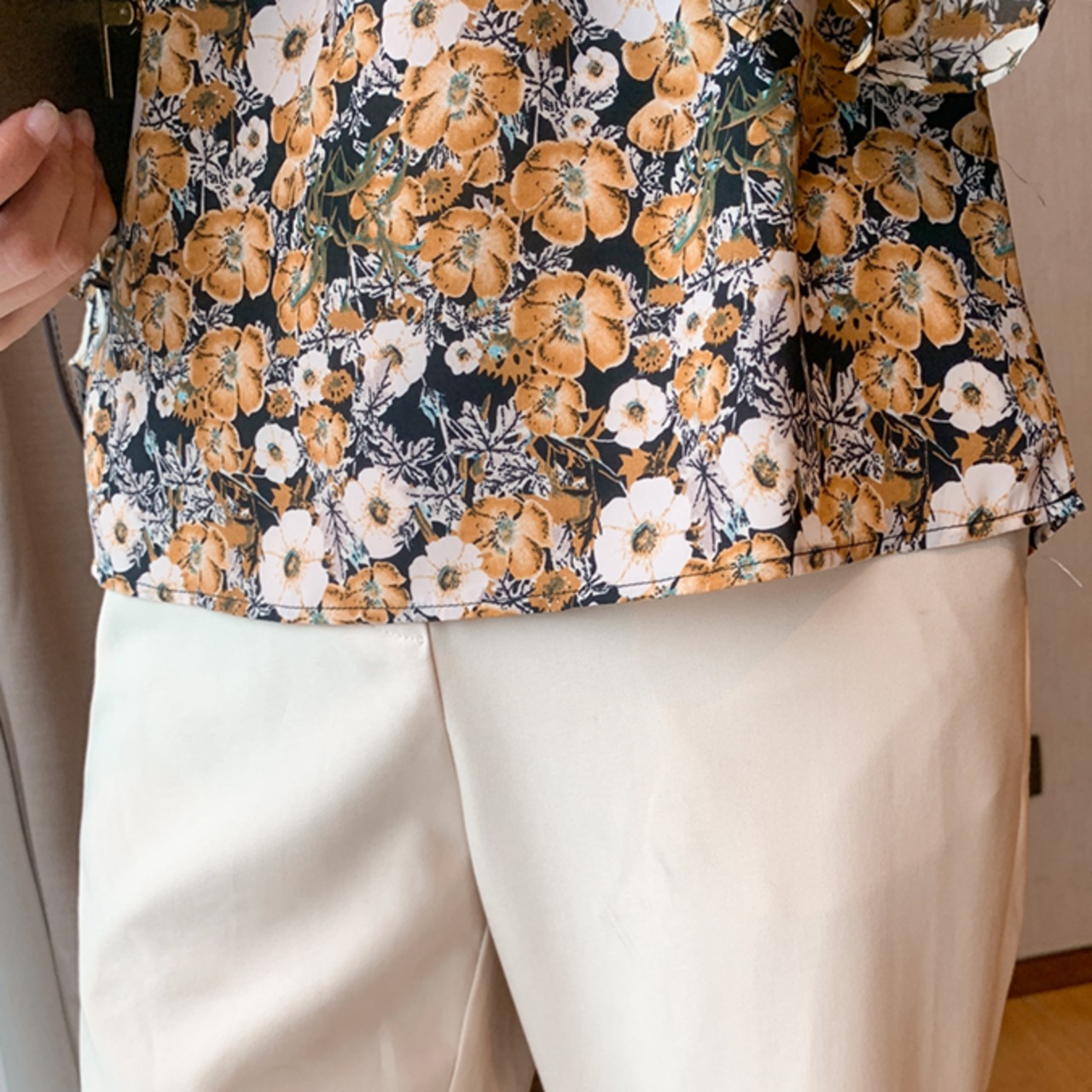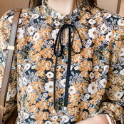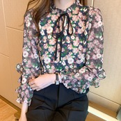 リボンタイが可愛い花柄の透け感ブラウスです♪