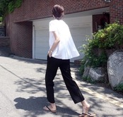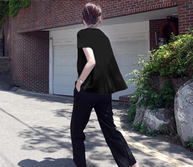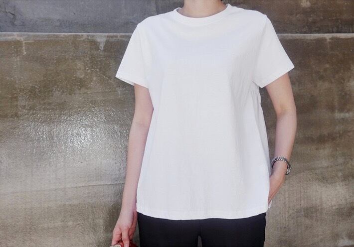 バックにギャザーの入ったデザイン性のあるTシャツです。