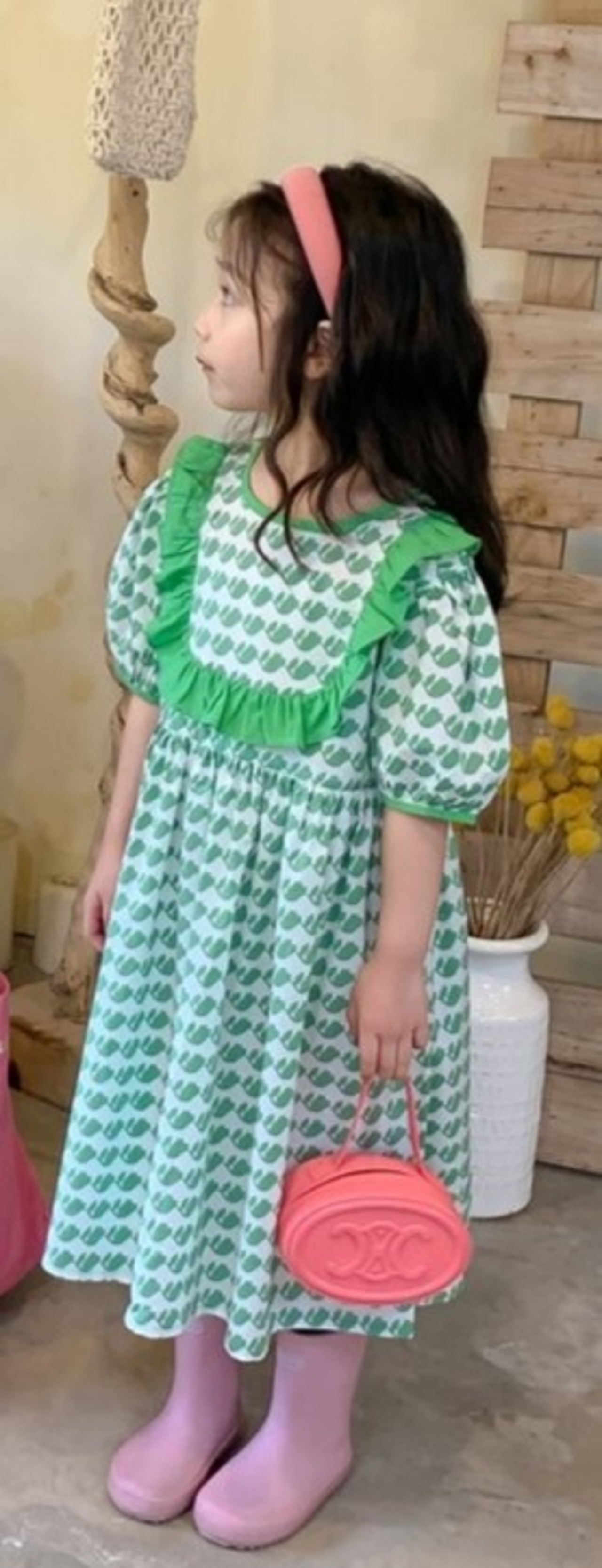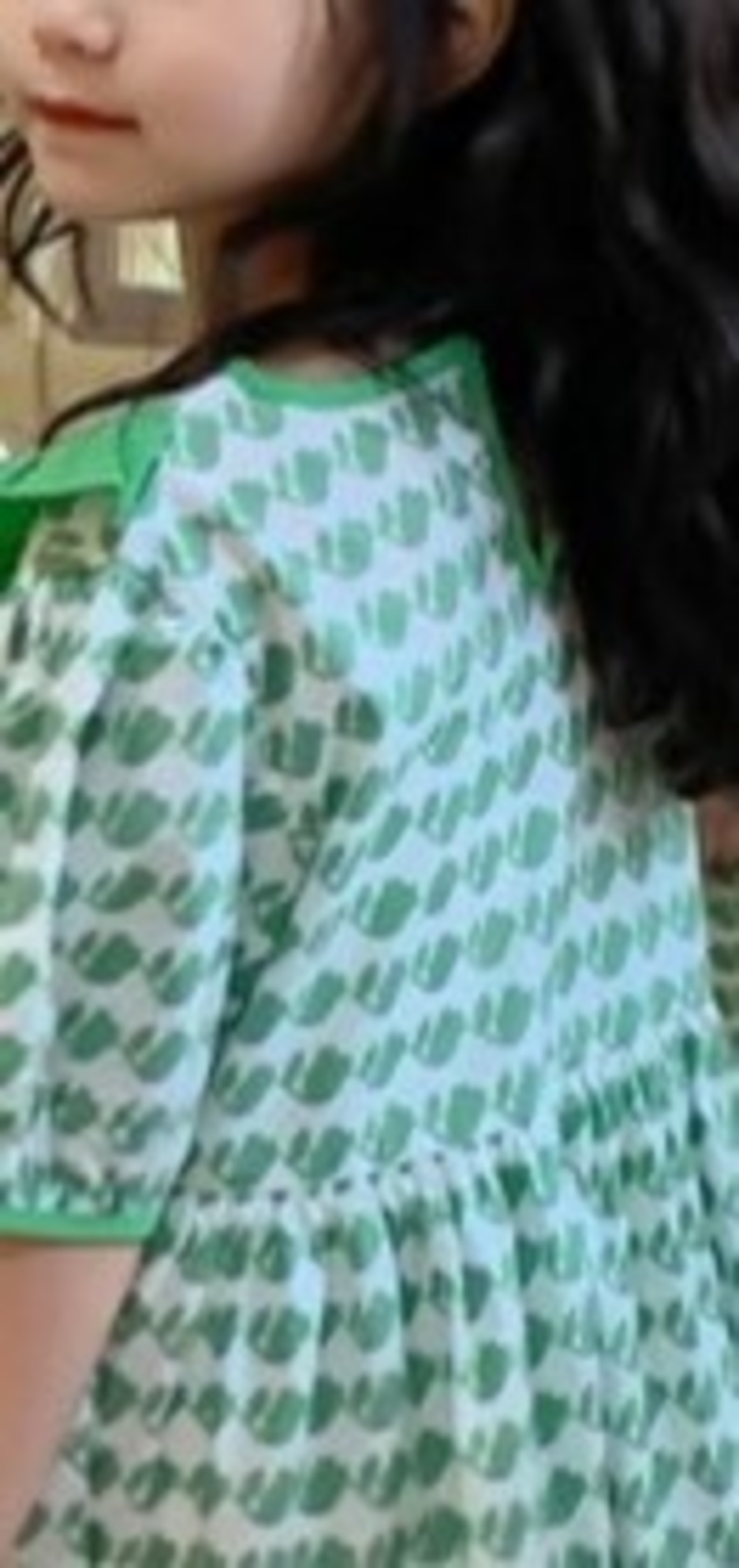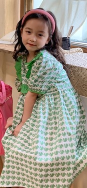 【子ども】女の子 かわいい みどり色 ロングワンピース 80 90 100 110 120 130 140cm ガーリー レトロ柄 キュート