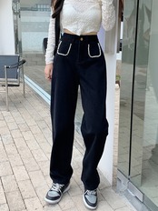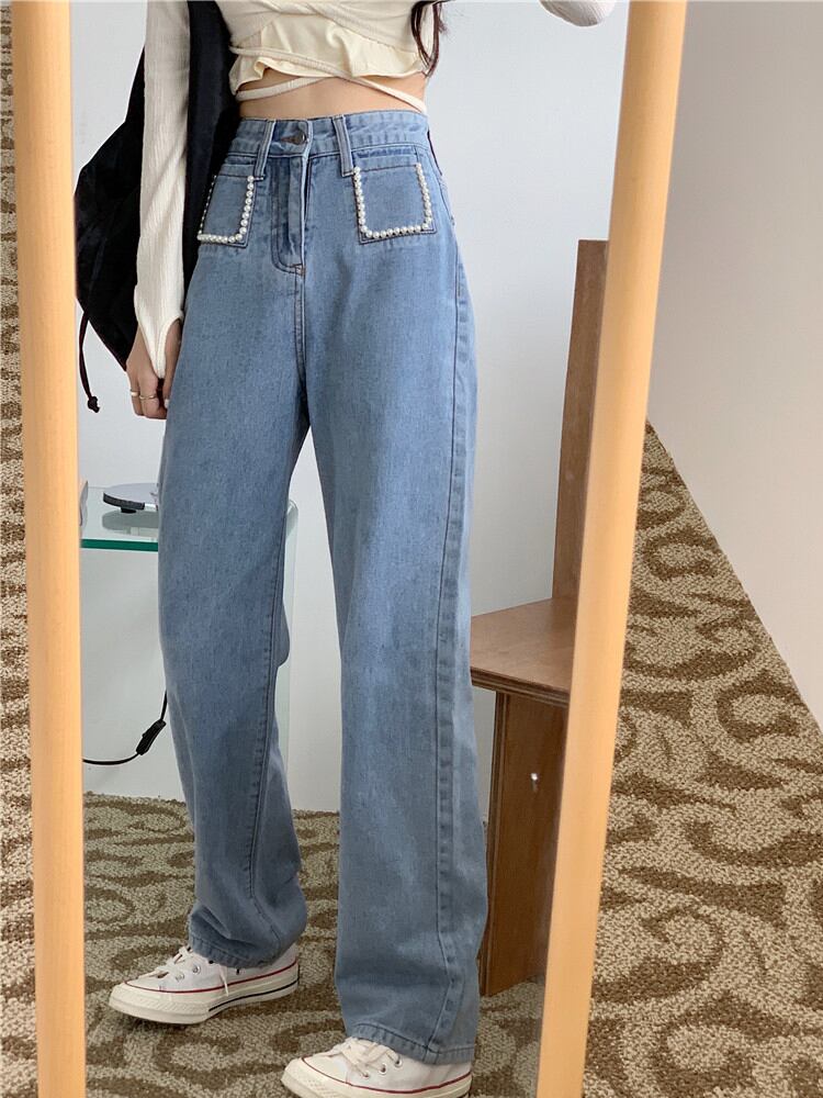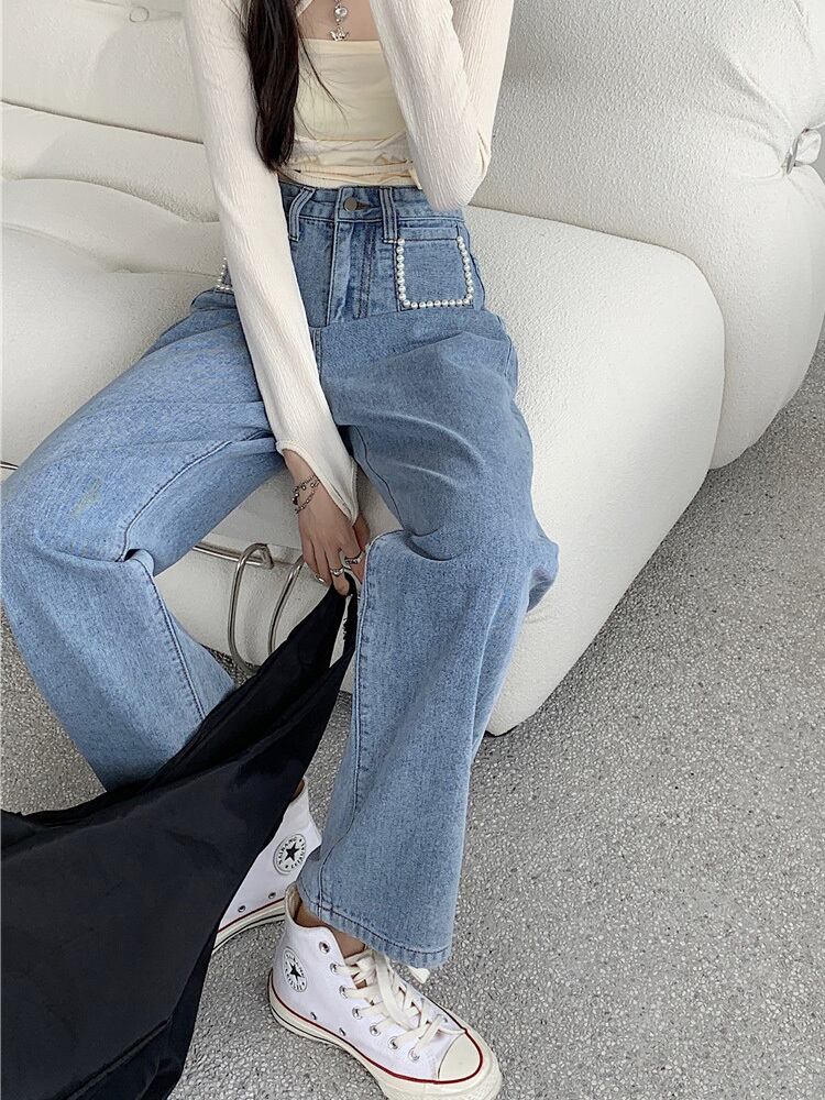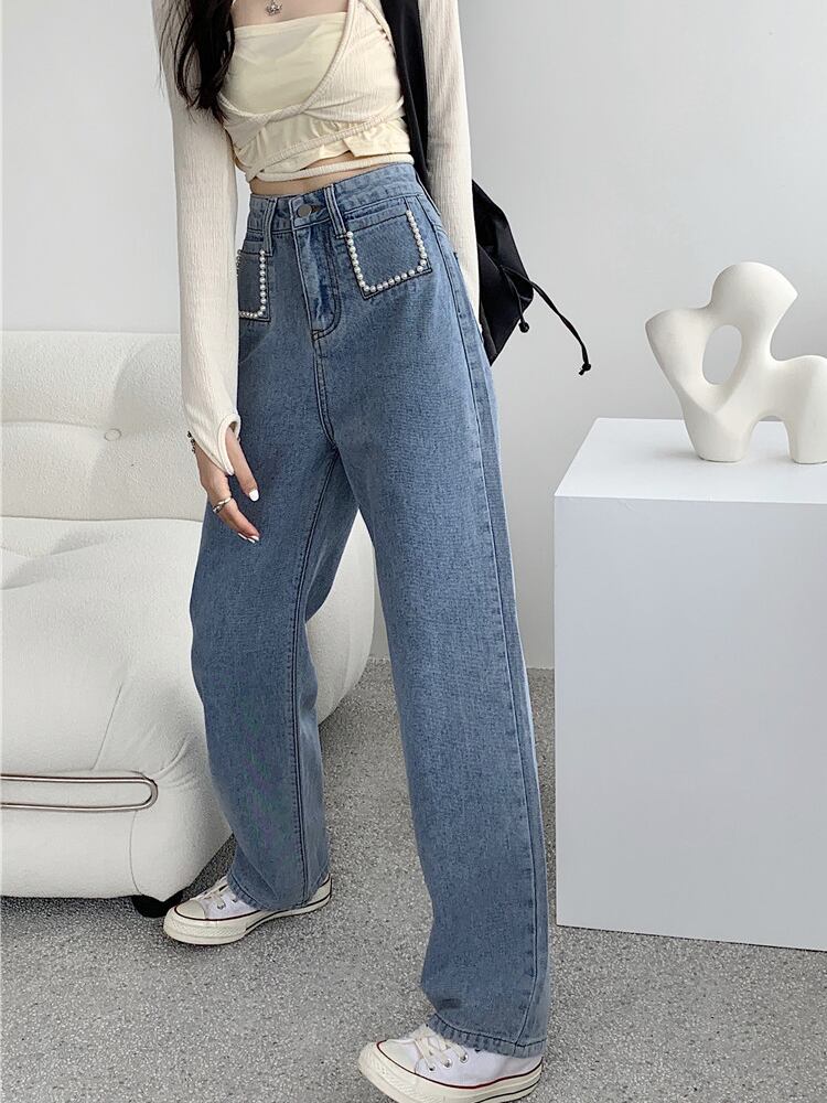 ボトムス パンツ ストレートパンツ デニムパンツ ストレート ポケット デニム ブルーデニム かわいい おしゃれ キュート ガーリー 個性的 オールシーズン 10代 20代 学生 デート お出かけ アウトドア イベント リゾート 旅行 着回し お揃い 双子 韓国系 コーデ インスタ映え S M L XL 2XL 3XL 4XL ブラック ライトブルー