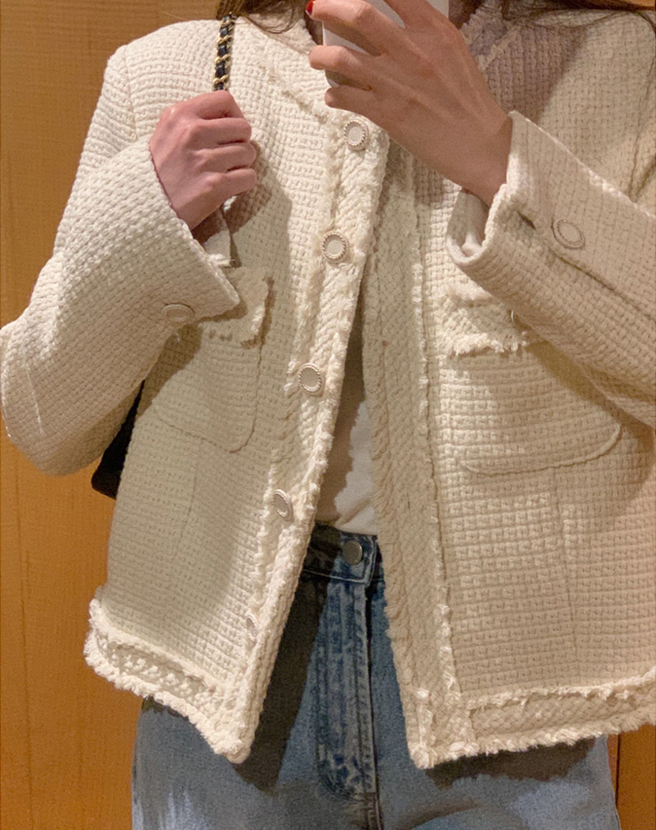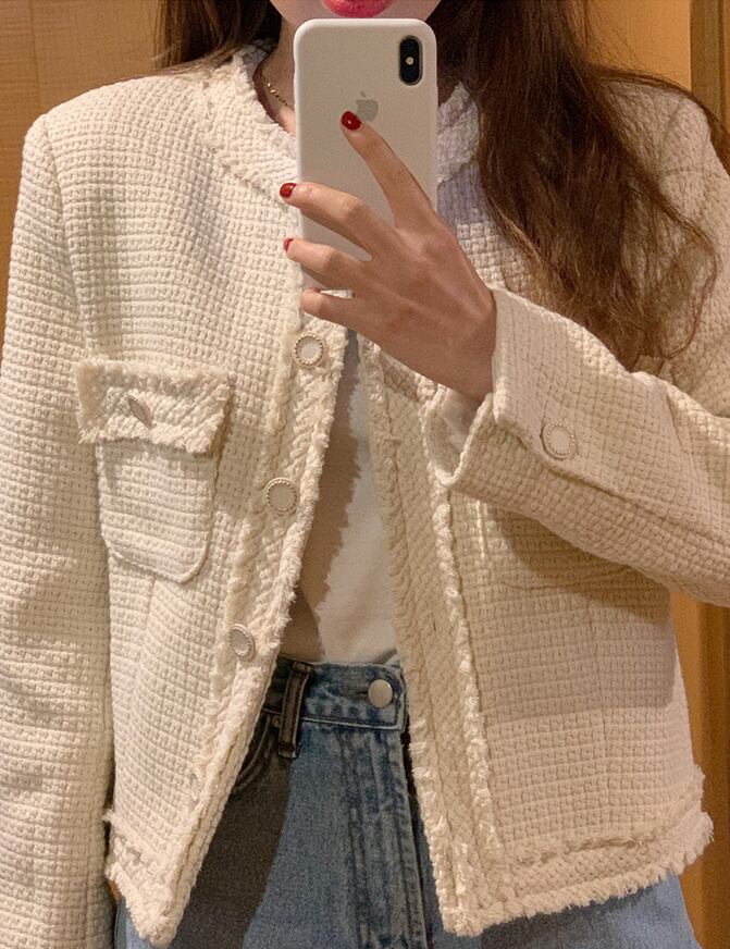 アウター ジャケット 袖あり ラウンドネック 前開き 綿 大人可愛い きれいめ 大人 上品 無地 秋 冬 10代 20代 通勤 学生 デート お出かけ 女子会 お泊まり 休日 イベント 旅行 普段使い 暖かい モテ S M L XL 白