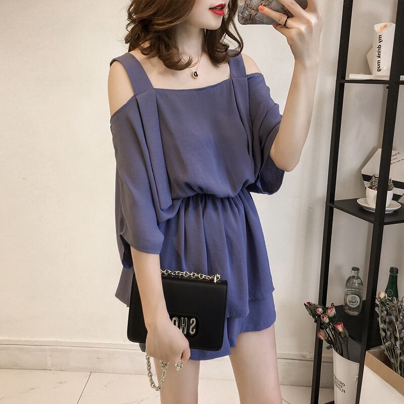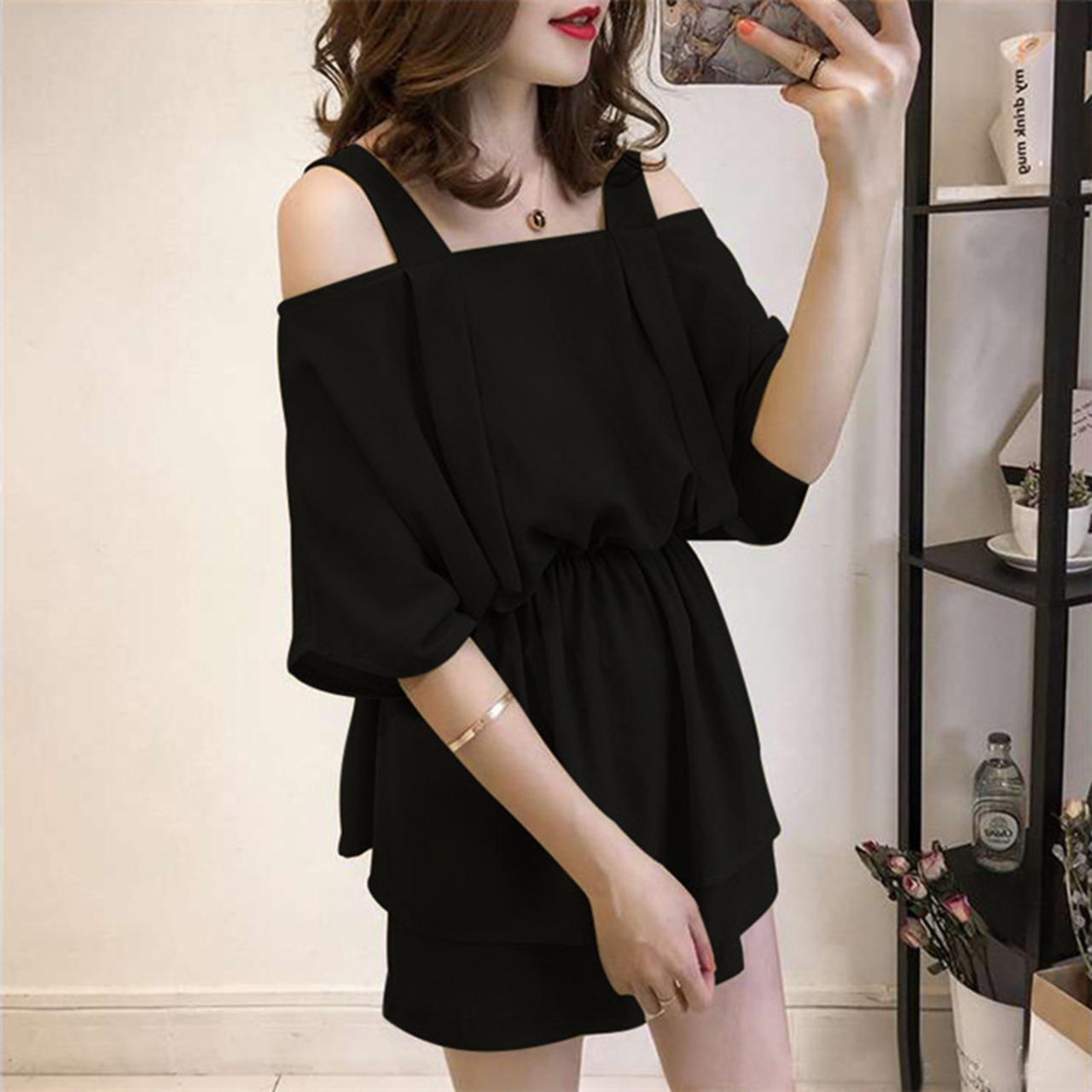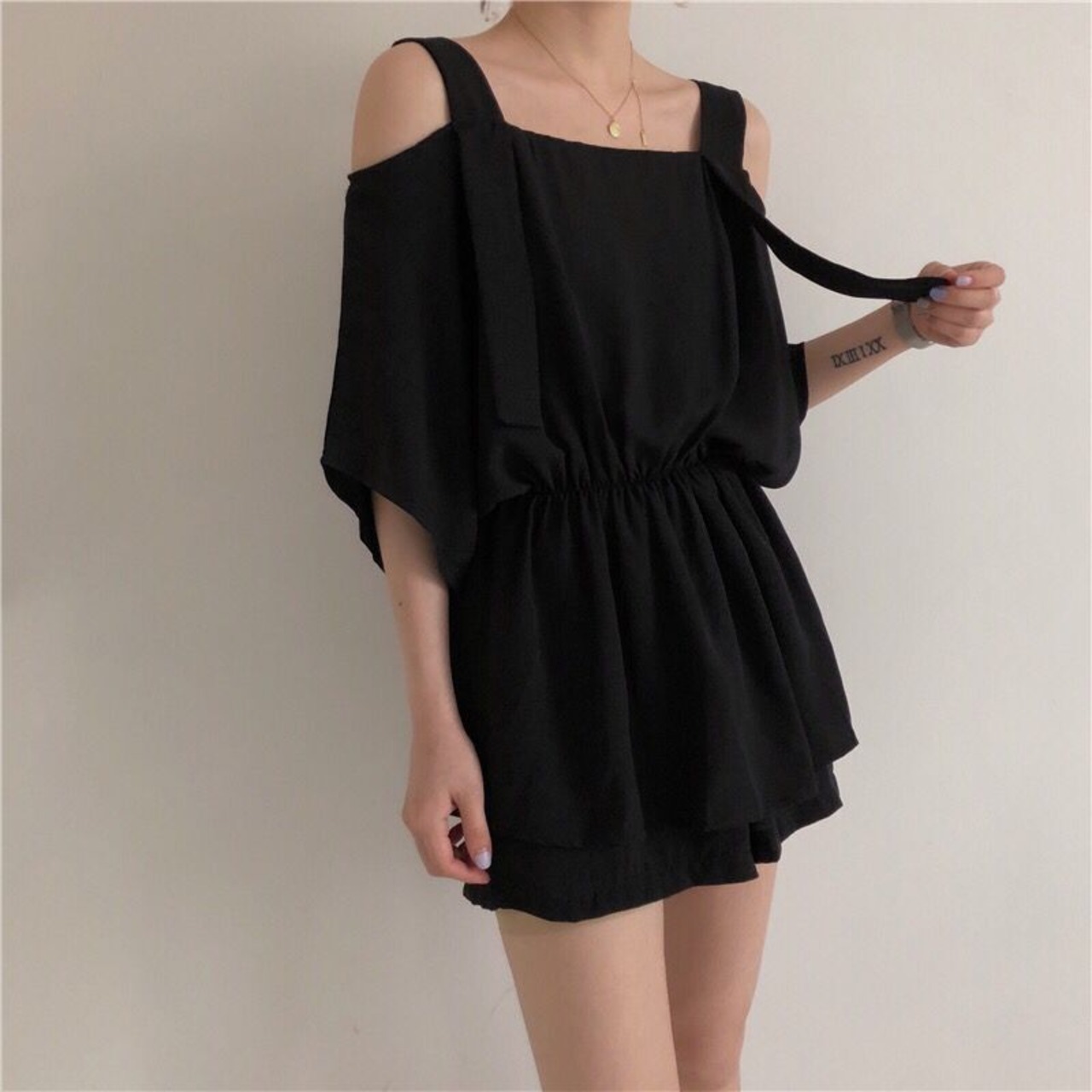 セットアップ ツーピース カットソー ショートパンツ 2点セット オープンショルダー キャミソー風 ストラップ サスペンダー 半袖 五分袖 ボリューム袖 ペプラム ゆったり 無地 ワイドレッグパンツ ウエストギャザー ウエストゴム 着回し 大人女子 大人可愛い かわいい キュート カジュアル お出かけ デイリー 普段使い ランチ カフェ リゾート ルームウェア 大きいサイズ レディース