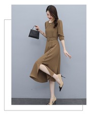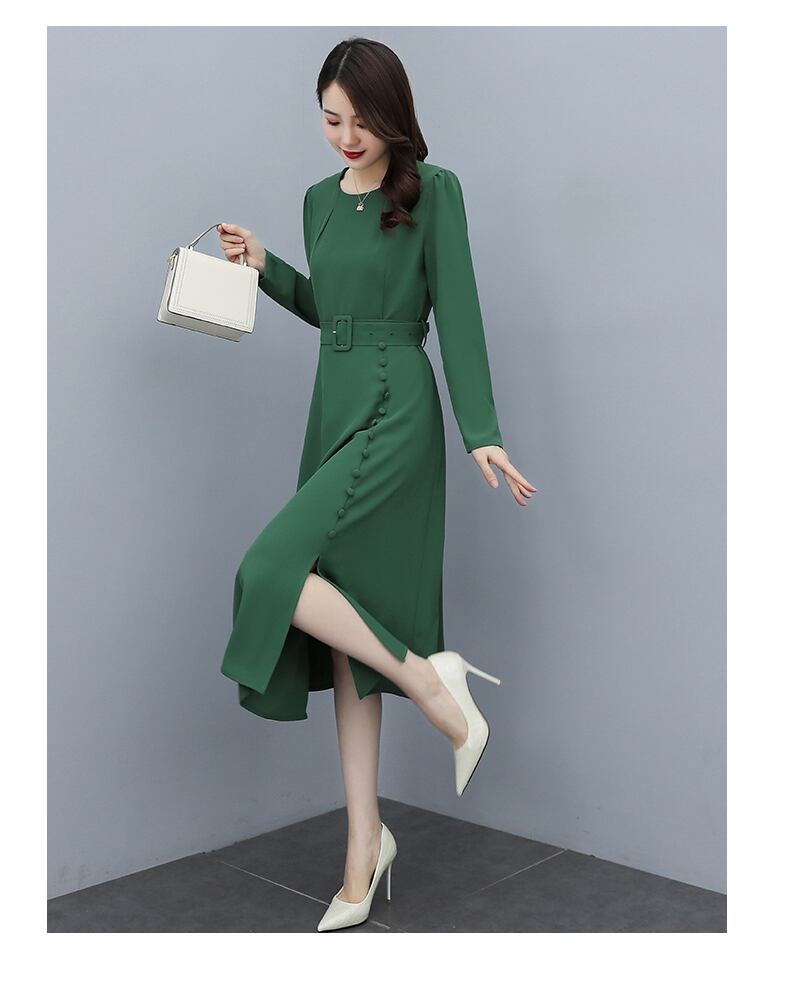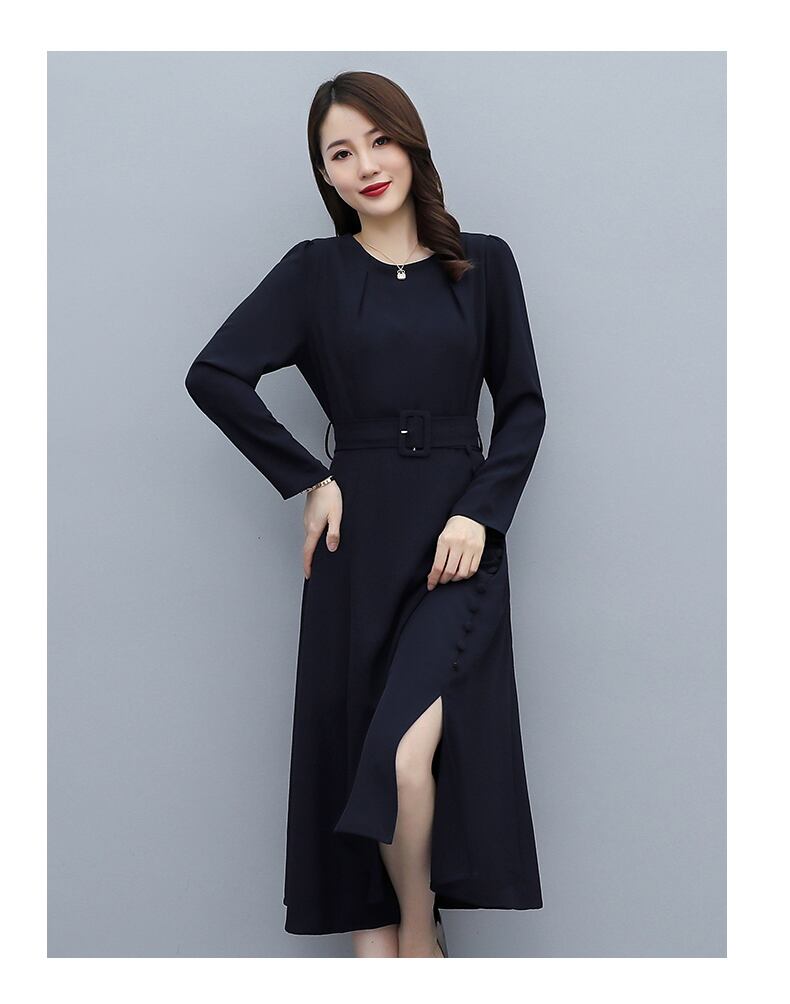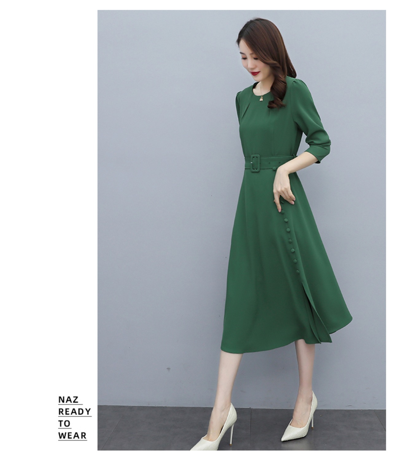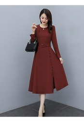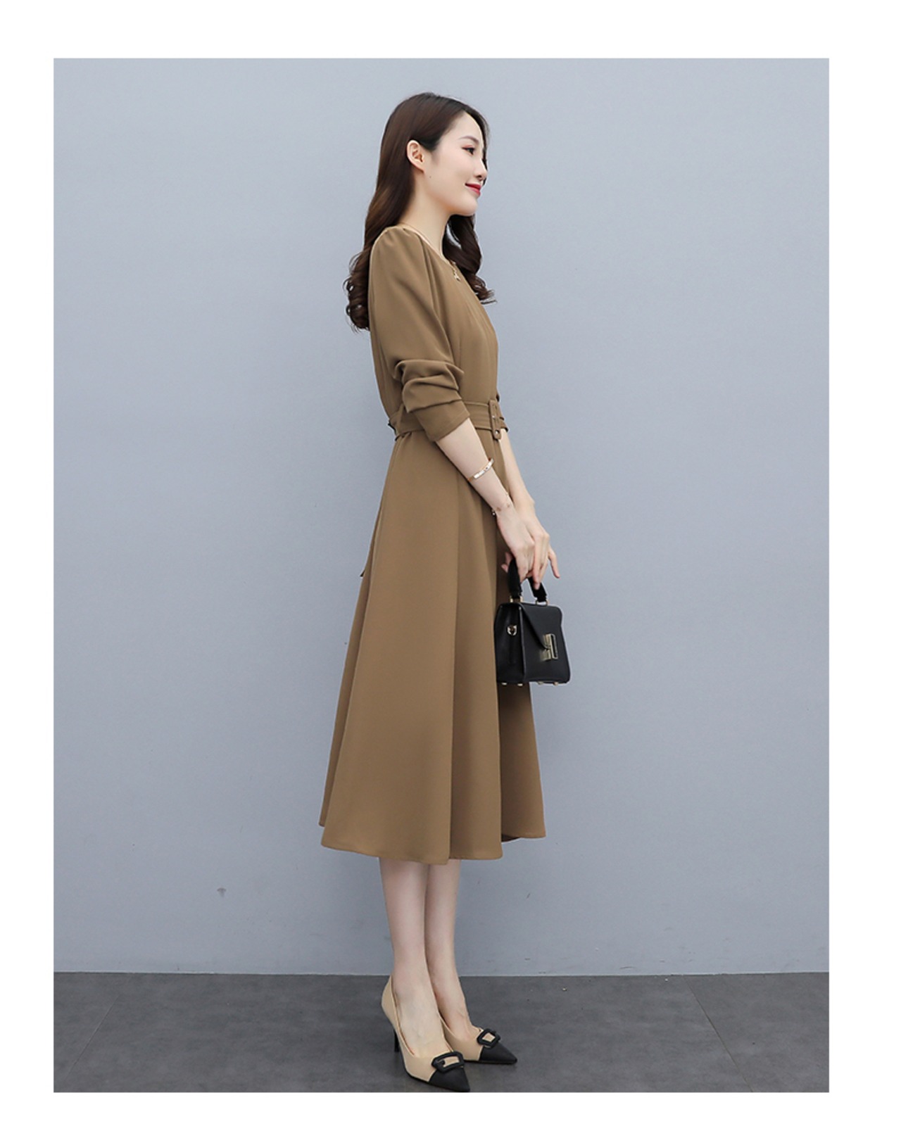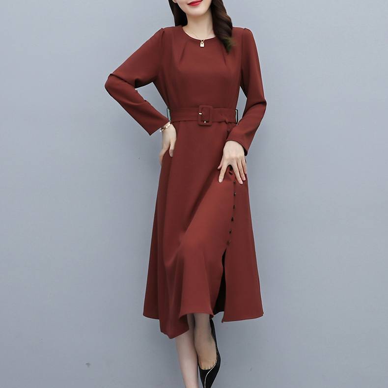 ワンピース フレアワンピース 膝下 ミモレ ミモレ丈 ロング ロング丈 袖あり 長袖 ラウンドネック セミフレア スリム 細身 Aライン ベルト ウエストマーク タック ポリエステル かわいい 大人可愛い きれいめ シンプル カジュアル 大人 上品 おしゃれ お洒落 大人女子 こなれ感 キュート エレガント モダン 抜け感 フェミニン 無地 春 秋 20代 30代 40代 レディース 女性用 デート お出かけ パーティー 着回し 普段使い スタイル モテ 体系カバー 美脚 脚長 プレゼント ギフト 定番