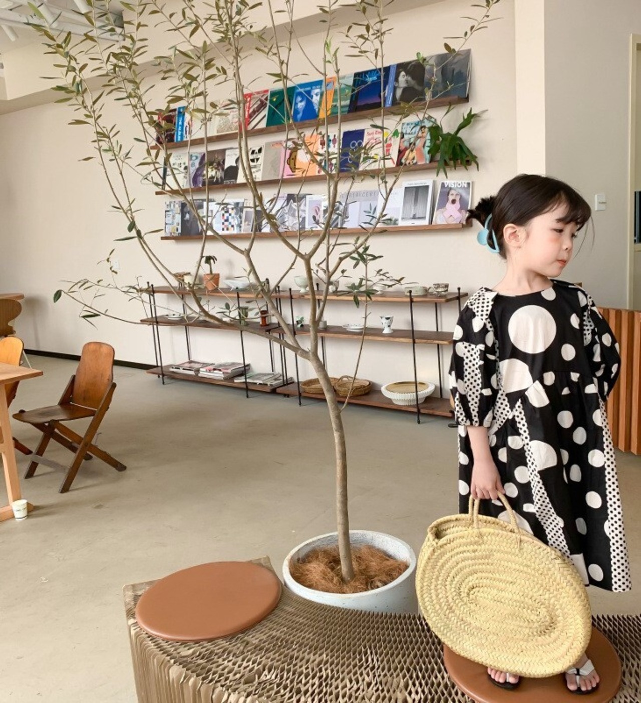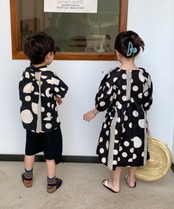【子ども】男の子 女の子 かっこいいペアルック 黒白ドットコーデ 水玉模様 ワンピース 黒パンツスタイル キッズ お出かけ用 80 90 100 110 120 130 140cm