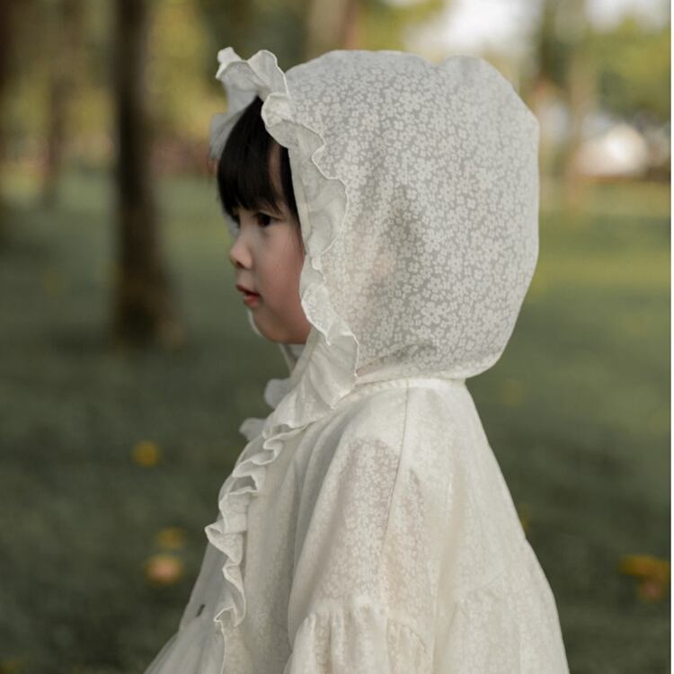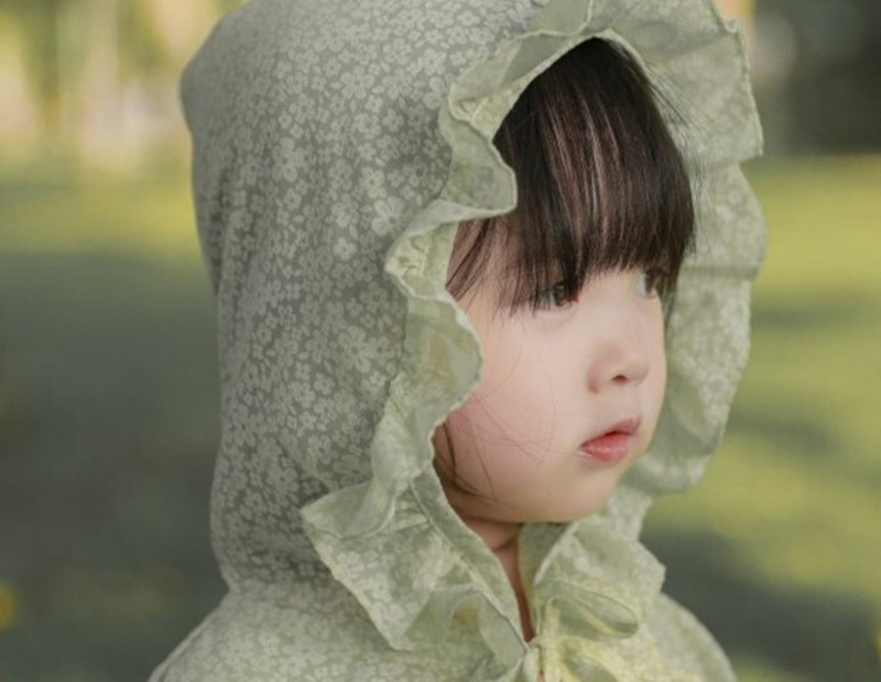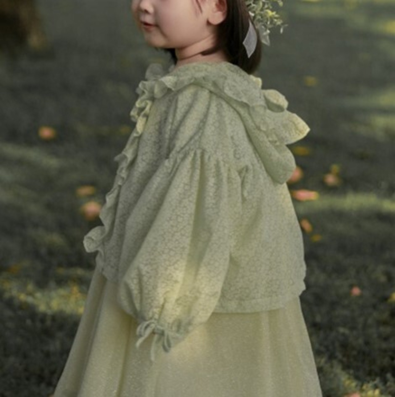 【子ども】女の子 かわいい フード付き小花柄フリルブラウス グリーン ホワイト 80 90 100 110 120 130 140cm