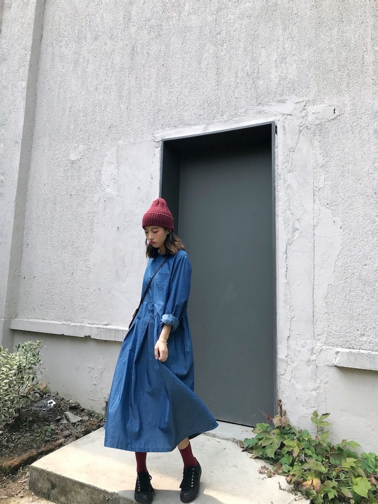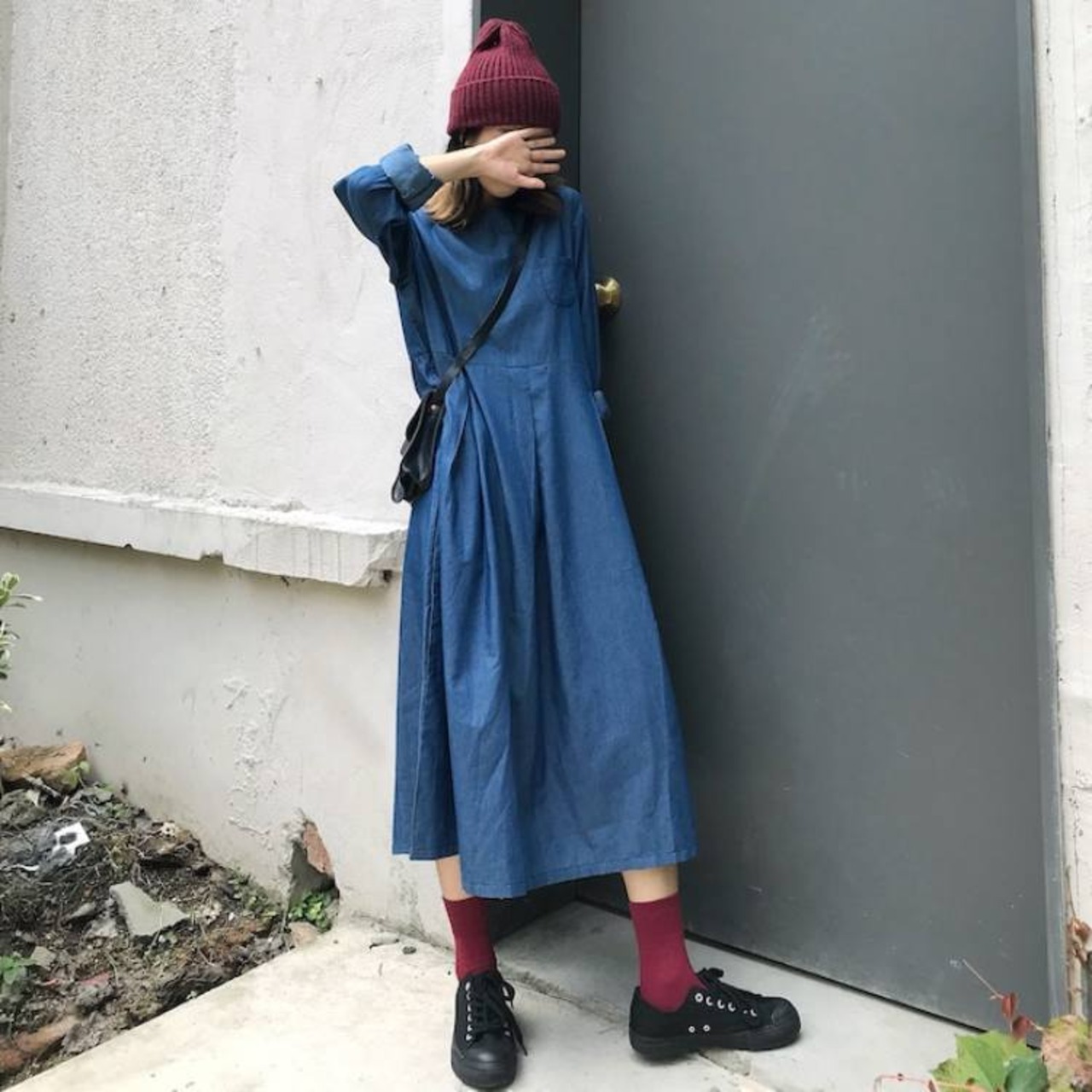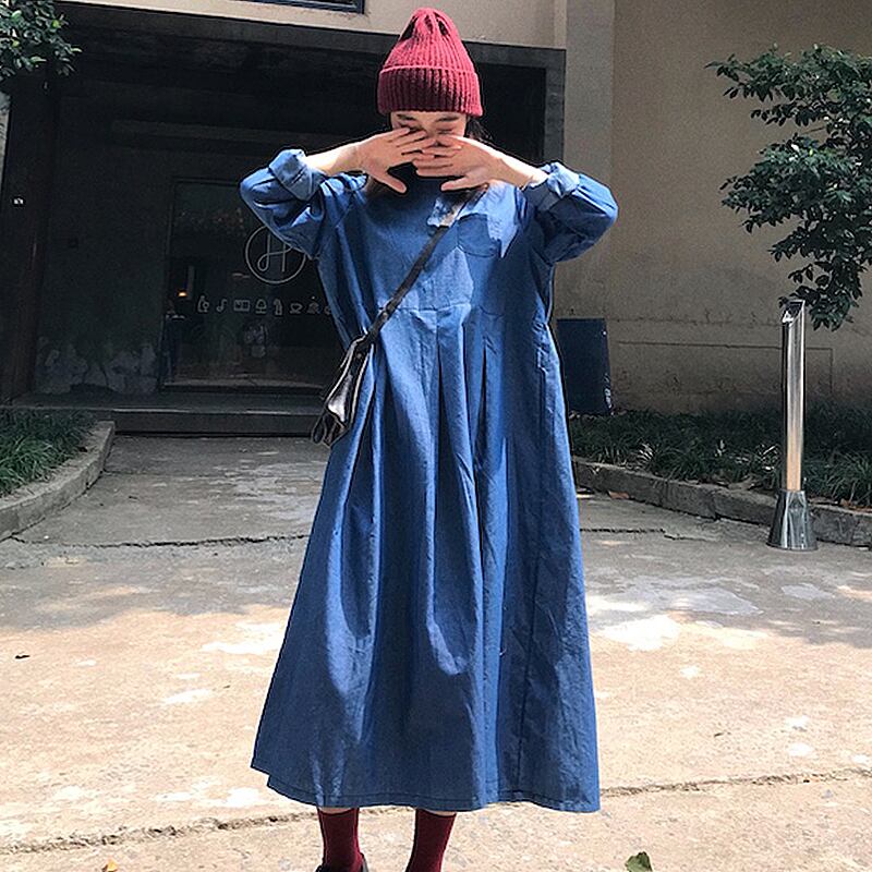 ワンピース フレアワンピース デニムワンピース ミモレ ミモレ丈 ロング ロング丈 袖あり 長袖 クルーネック フレア ワイド Aライン ハイウエスト タック かわいい 大人可愛い きれいめ シンプル カジュアル 大人 上品 おしゃれ お洒落 ラフ キュート ガーリー ルーズ エレガント フェミニン 無地 春 秋 レディース 女性用 デート お出かけ 休日 着回し 普段使い 楽ちん モテ 美脚 脚長 プレゼント ギフト 定番 プチプラ 安い ゆったり ゆる