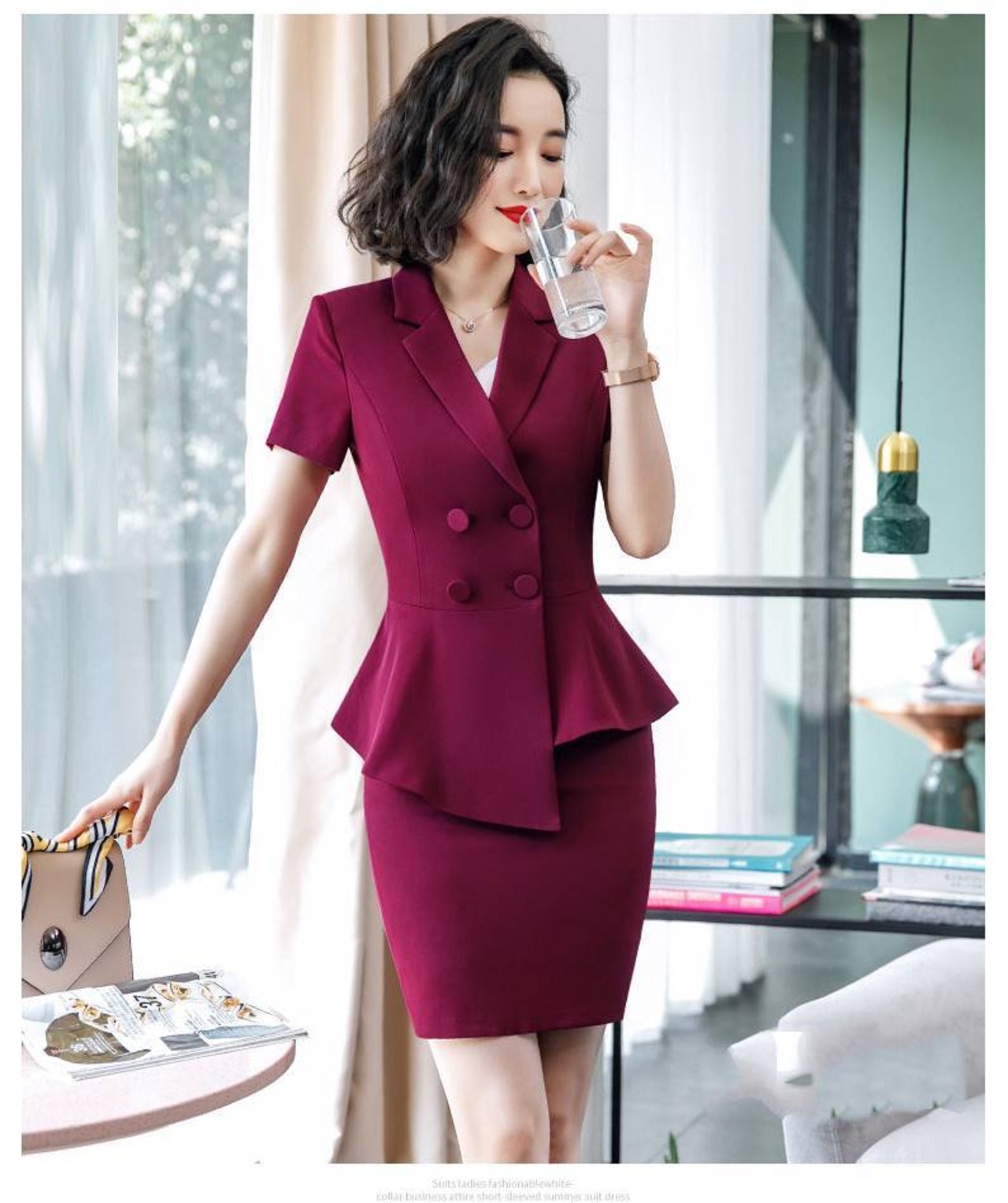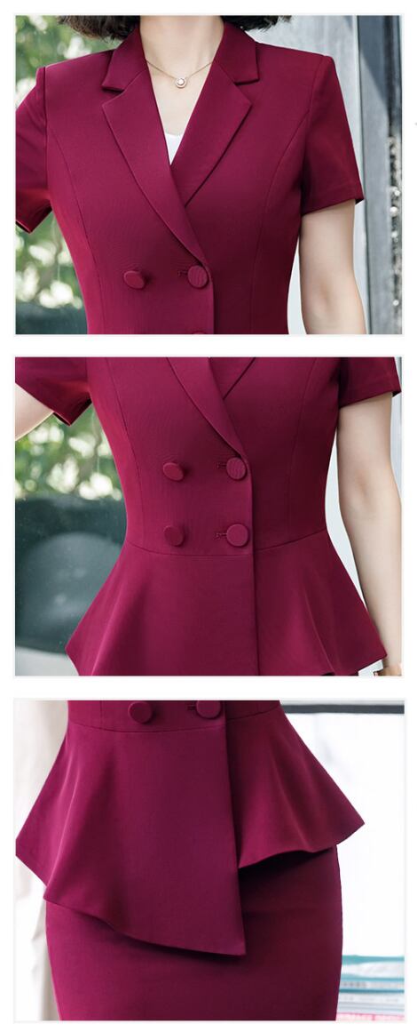 ペプラムデザインが女性らしさを引き立て、お洒落な雰囲気を演出します。