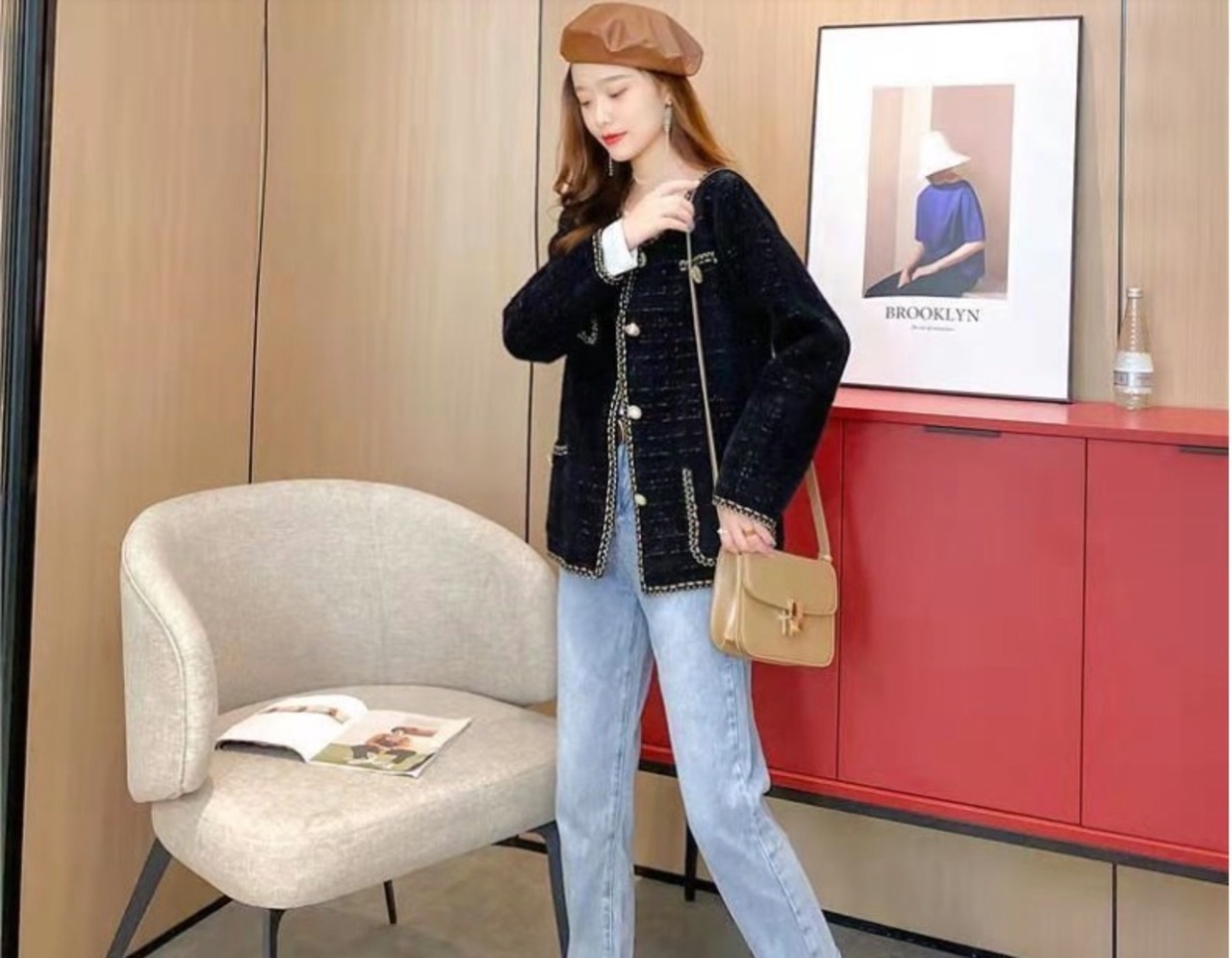 ビジューのようなボタンも特徴的。
