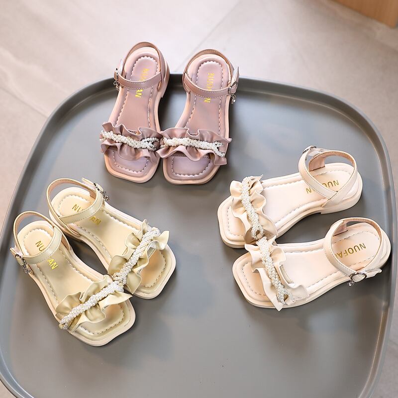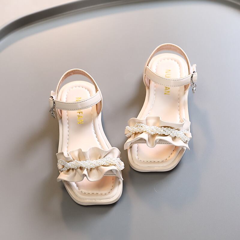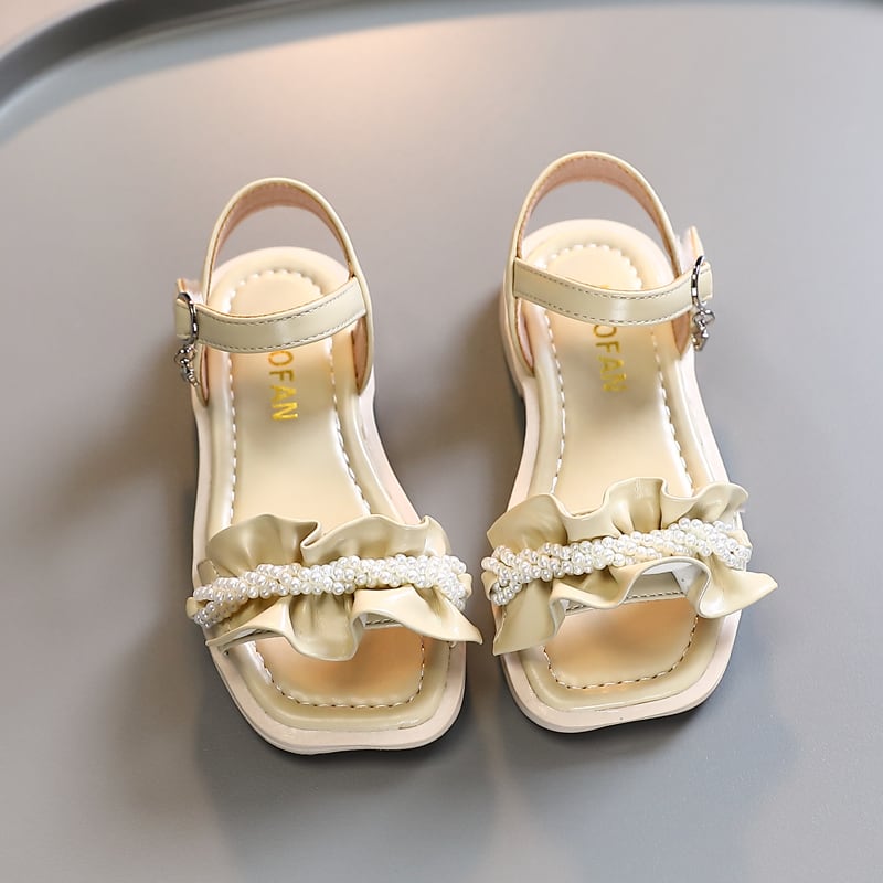 【子ども】女の子 かわいい 真珠とフリルのサンダル プリンセスシューズ ガーリー キュート おしゃれ 足楽 13.7cm~
