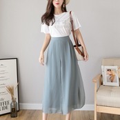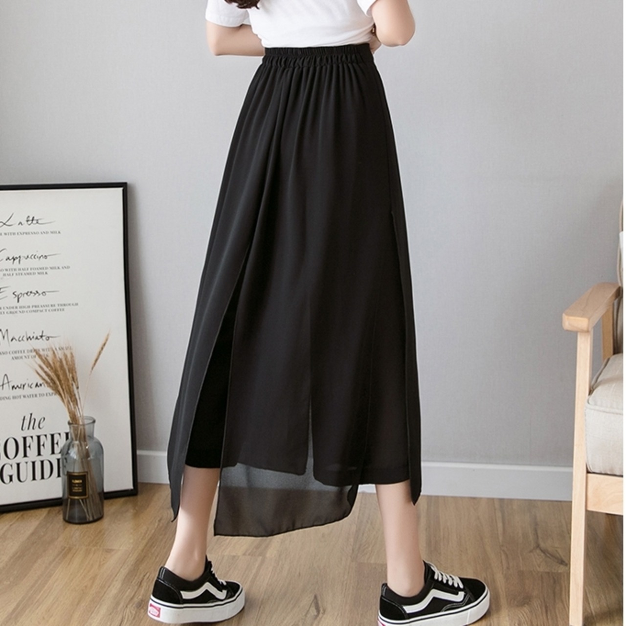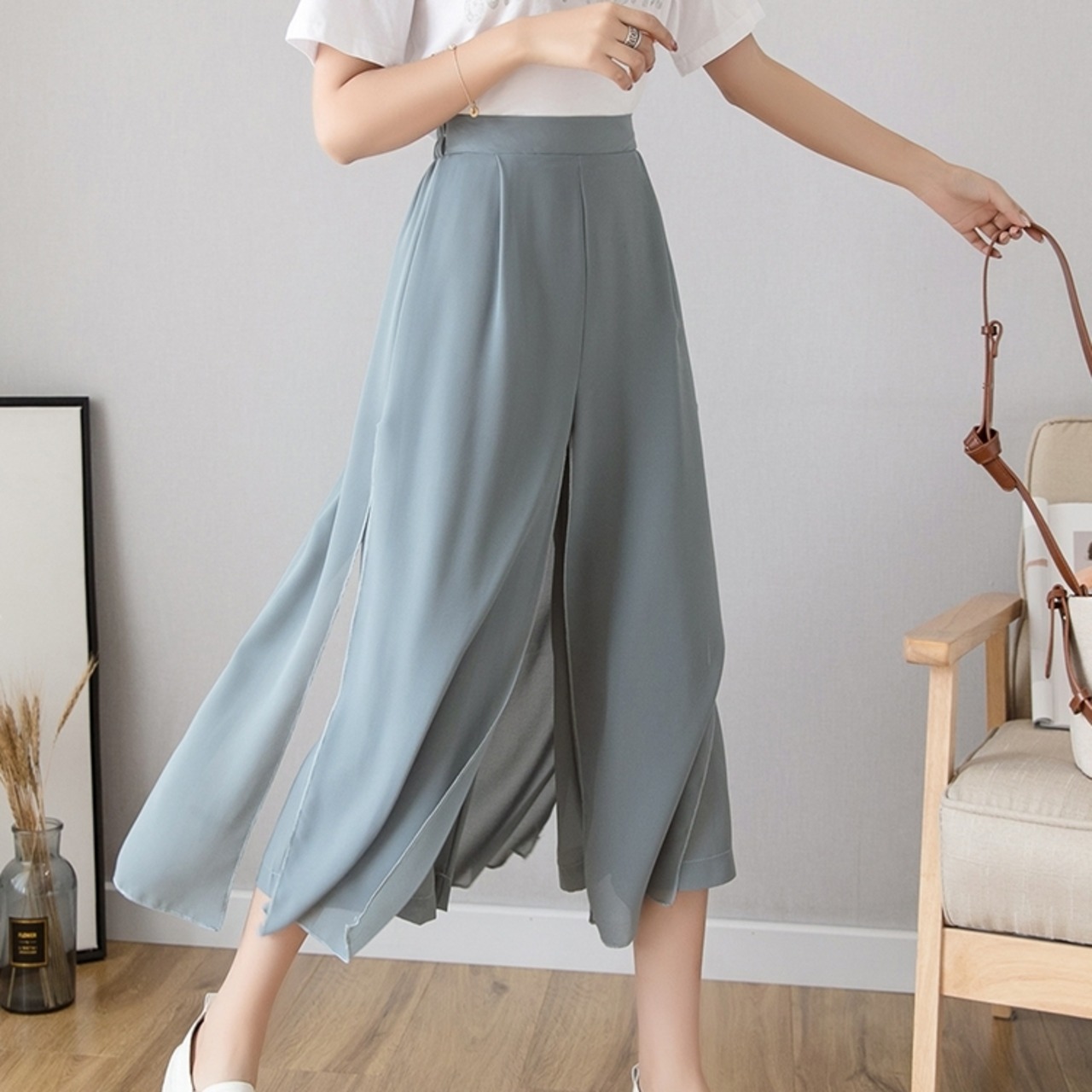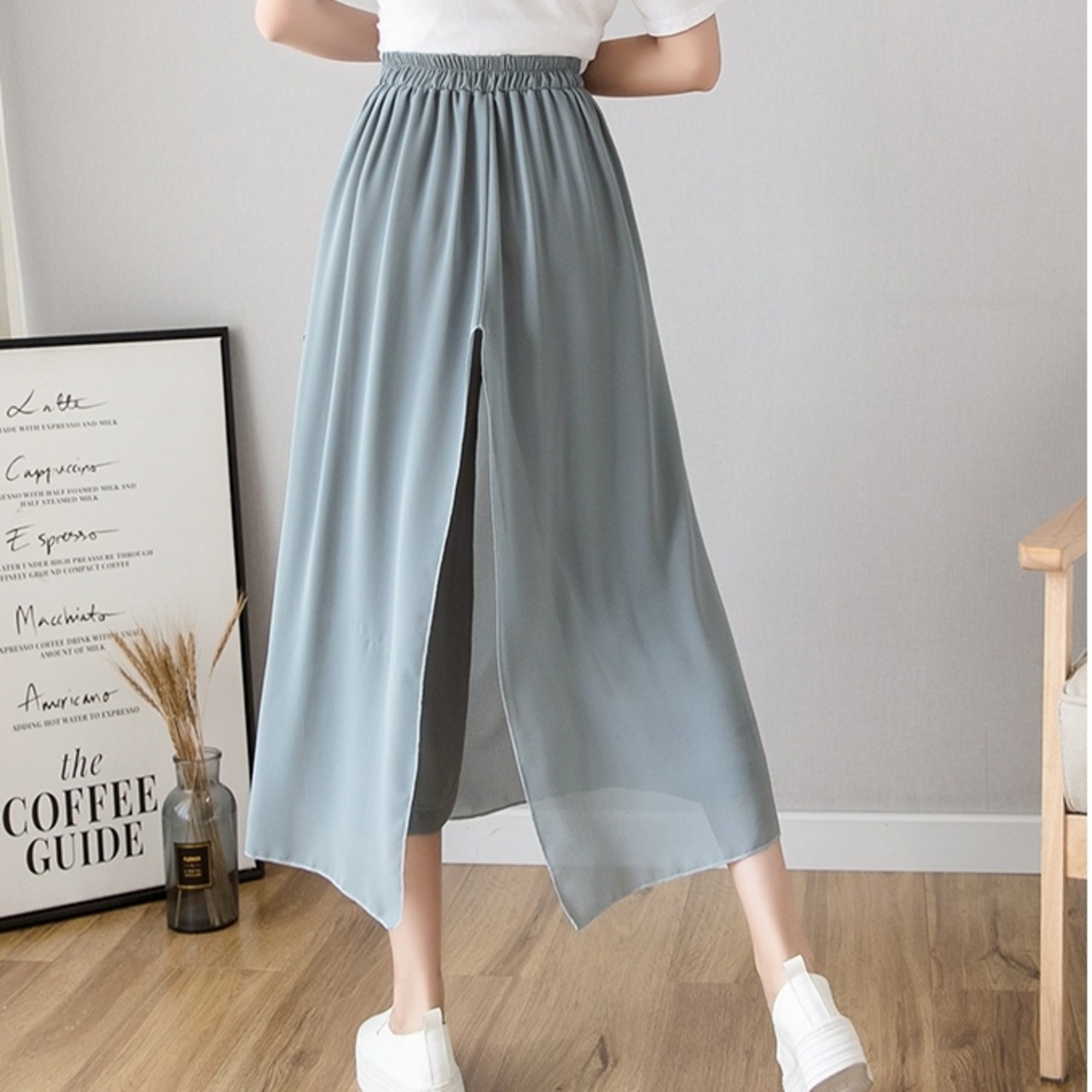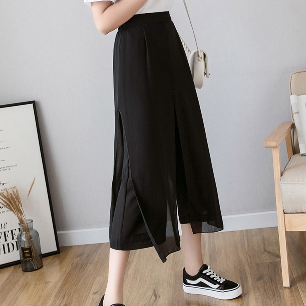 ボトムス ガウチョパンツ スカーチョ プリーツ 重ね着風 レイヤード スリット ロング丈 ワイドレッグパンツ ウエストゴム ハイウエスト 透け感 Aライン 大人女子 大人可愛い きれいめ カジュアル お出かけ デート リゾート 春夏 20代 30代 40代 50代 レディース