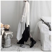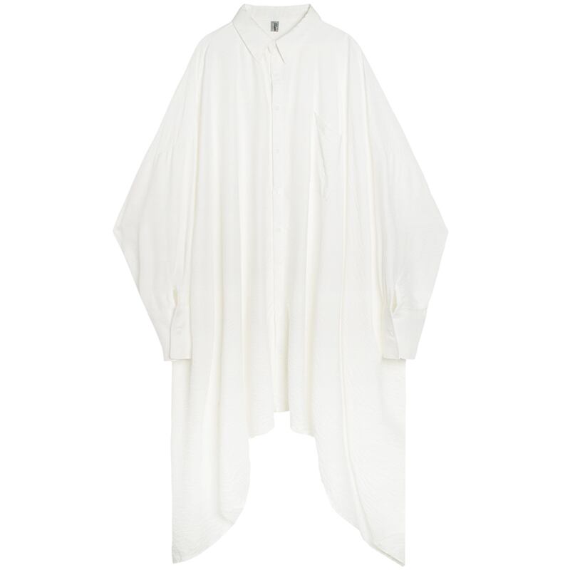 アシンメトリーデザインがモードな雰囲気を醸し出す、魅力的な一着です。