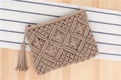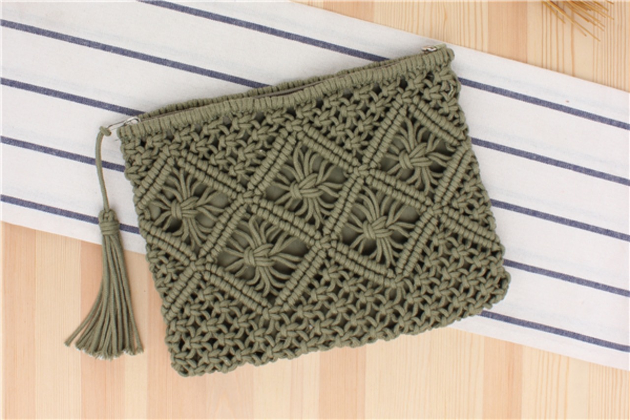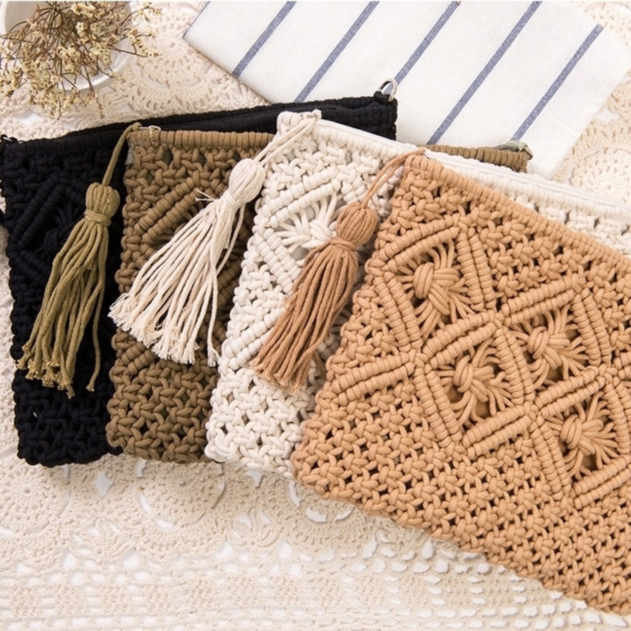 バッグ サマーバッグ クラッチバッグ 透かし編み タッセル付き コットン ジッパー 大人可愛い 大人女子 エレガント 上品 きれいめ カジュアル お出かけ リゾート ビーチ 夏 レディース