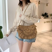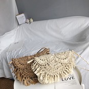 フリンジデザインがキュートな透かし編みのショルダーバッグ。