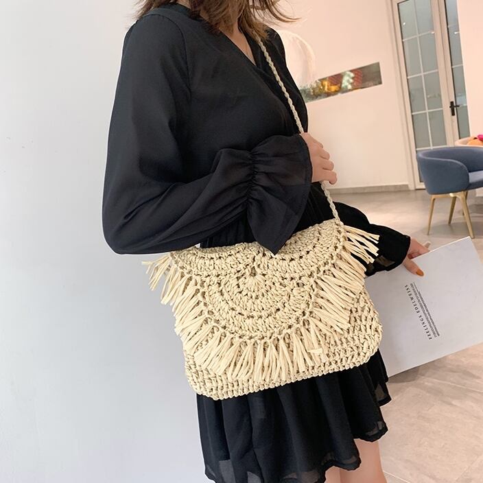 バッグ かごバッグ ショルダーバッグ サマーバッグ タッセル フリンジ ストローバッグ 透かし編み 大容量 大人可愛い 大人女子 カジュアル お出かけ デート カフェ リゾート 海 夏 レディース