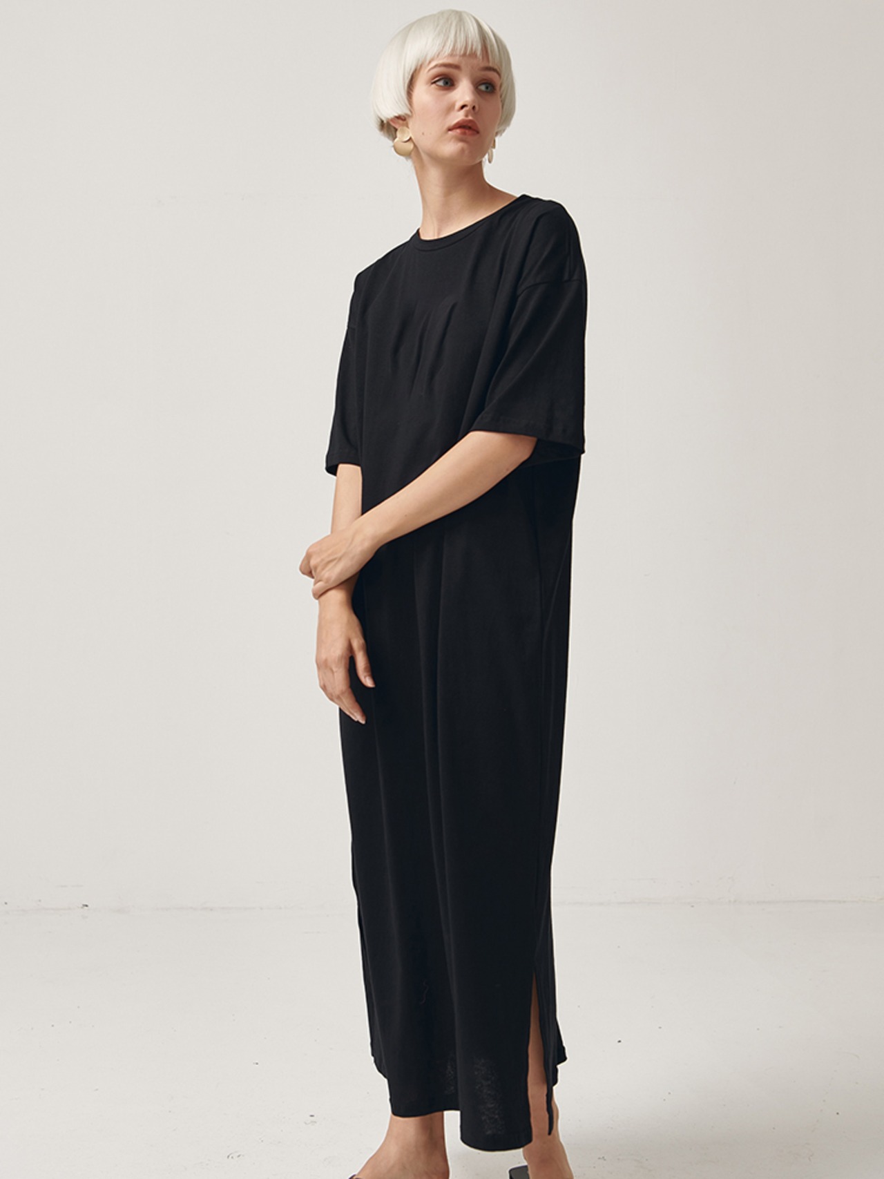 ワンピース Tシャツ ワンピドレス ロング丈 アンクル丈 袖あり 半袖 スクエアネック クルーネック 襟なし Iライン スマート スリット サイドスリット 綿 大人可愛い きれいめ シンプル カジュアル 大人 上品 おしゃれ かっこいい 大人女子 こなれ感 ラフ ボーイッシュ クール モード系 無地 春 夏 秋 シーズンレス 10代 20代 30代 40代 レディース 女性用 ママ 通勤 学生 通学 公園デビュー 休日 着回し 普段使い 重ね着 ファッション コーデ スタイル 楽ちん フリーサイズ