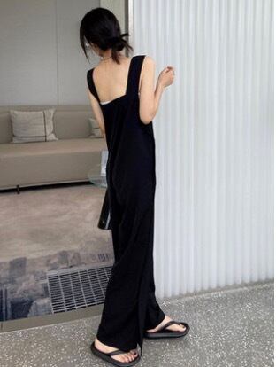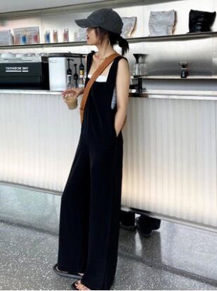 ボトムス パンツ オールインワン サロペット ワイドパンツ ロング ロング丈 袖なし ワイド 前開き 薄手 大人可愛い きれいめ シンプル カジュアル 大人 おしゃれ 大人女子 こなれ感 ラフ マニッシュ ボーイッシュ 無地 春 夏 秋 オールシーズン 20代 30代 40代 レディース 女性用 ママ 学生 通学 デート お出かけ 公園デビュー 女子会 休日 アウトドア 高原 着回し 普段使い 重ね着 韓国 オルチャン ファッション コーデ スタイル 楽ちん サイズ 大きめ ゆったり ゆる ブラック