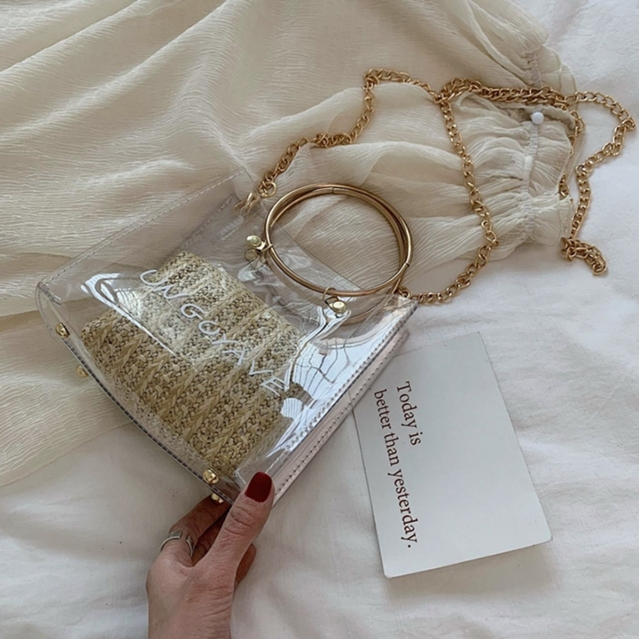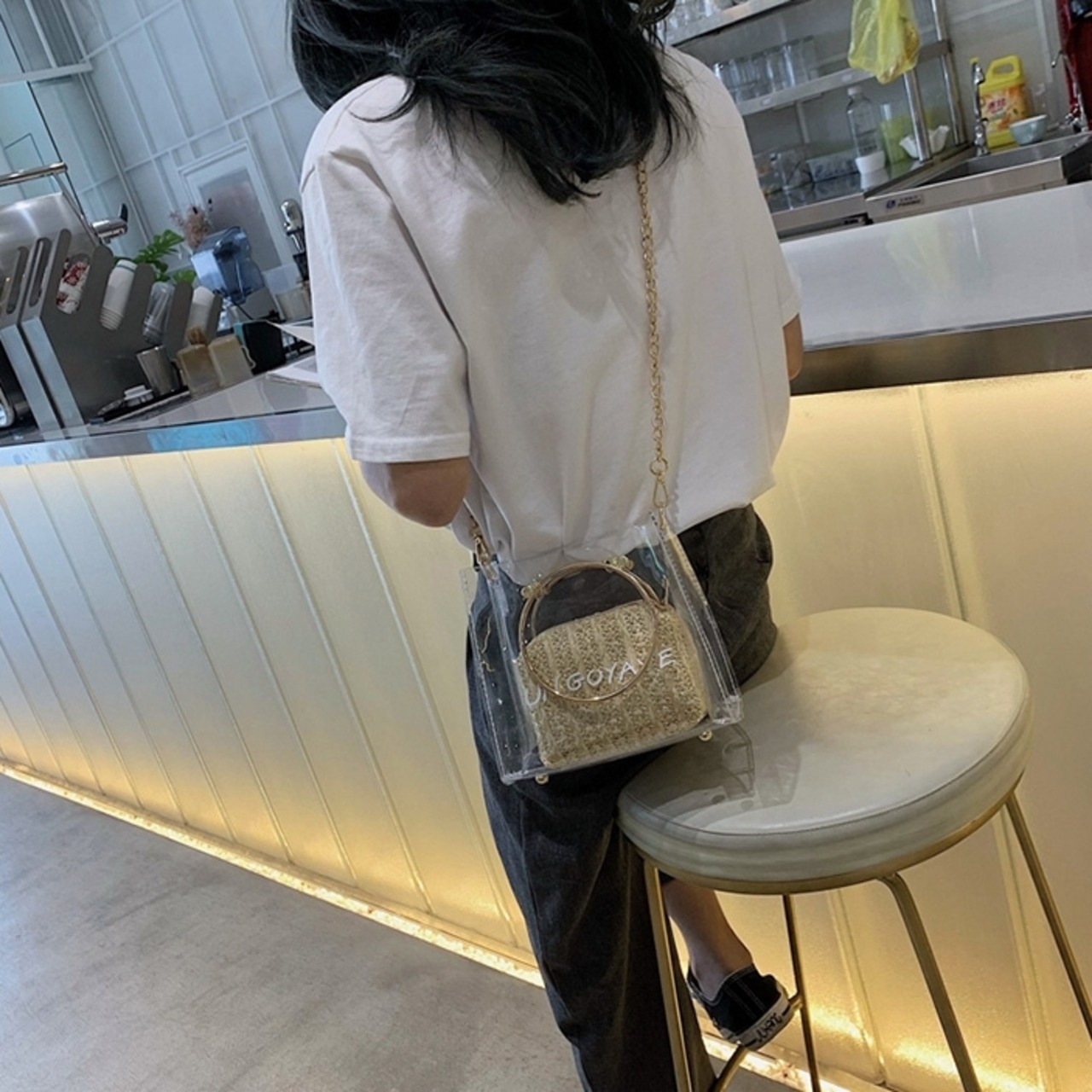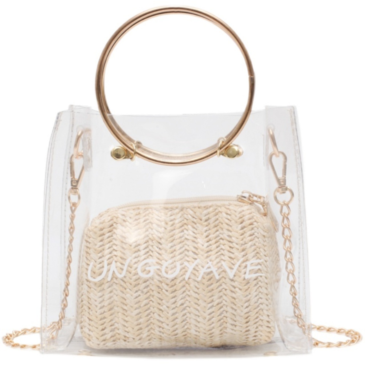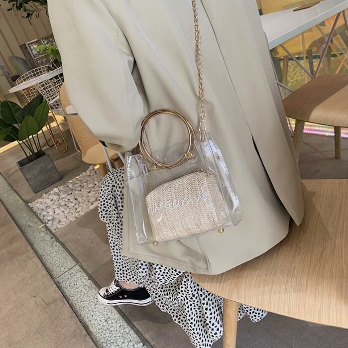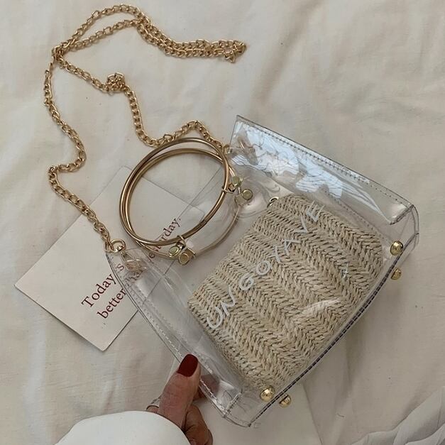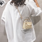 バッグ クリアバッグ ショルダーバッグ ハンドバッグ 2Wayバッグ バッグインバッグ スクエアバッグ チェーン PVC ロゴ ミニバッグ カジュアル お出かけ デイリー リゾート レジャー 旅行 レディース