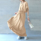 ウエストマークにリボンがついたルーズなシルエットのワンピースです。