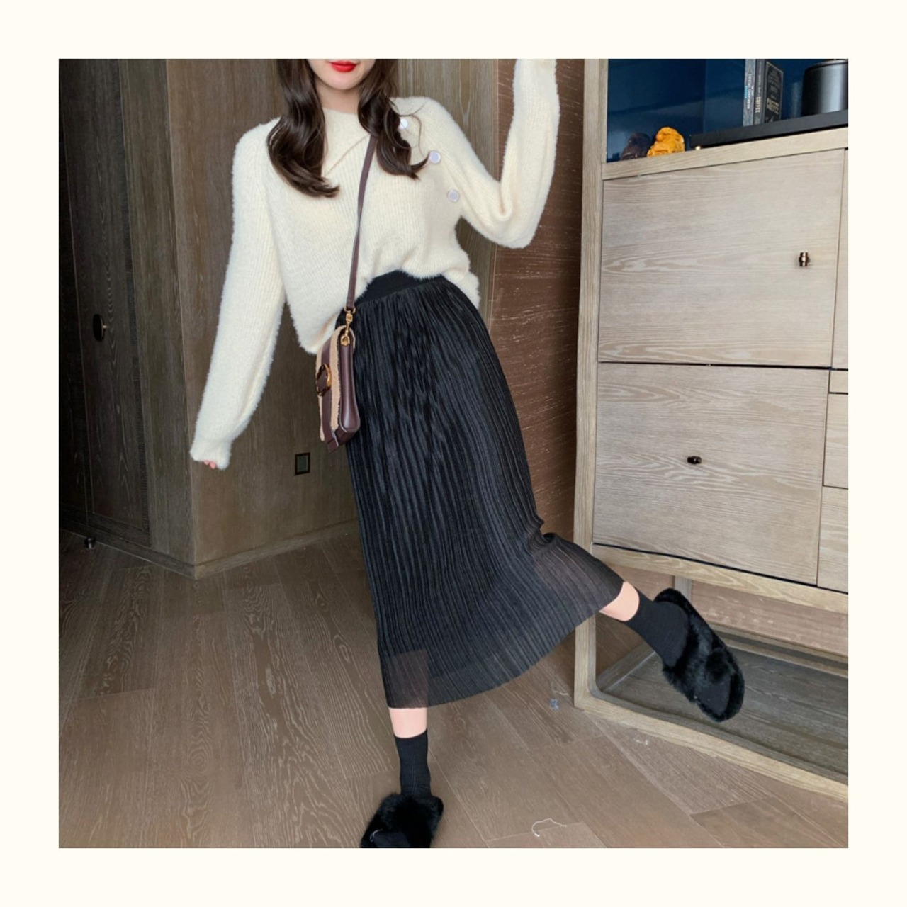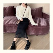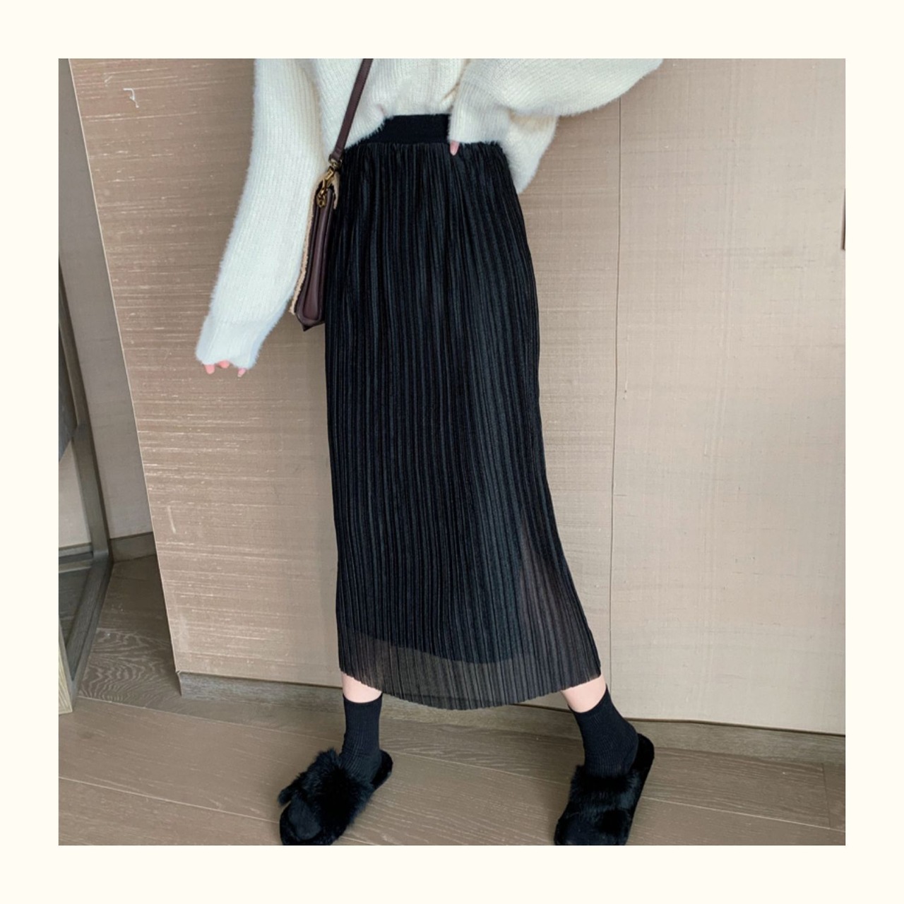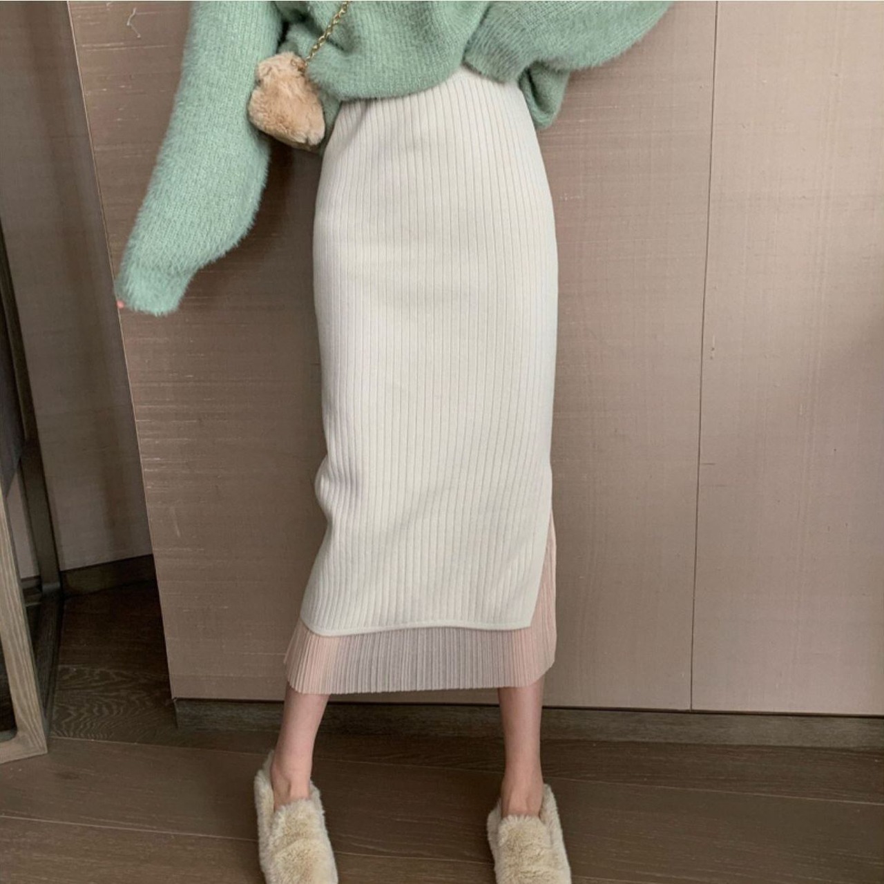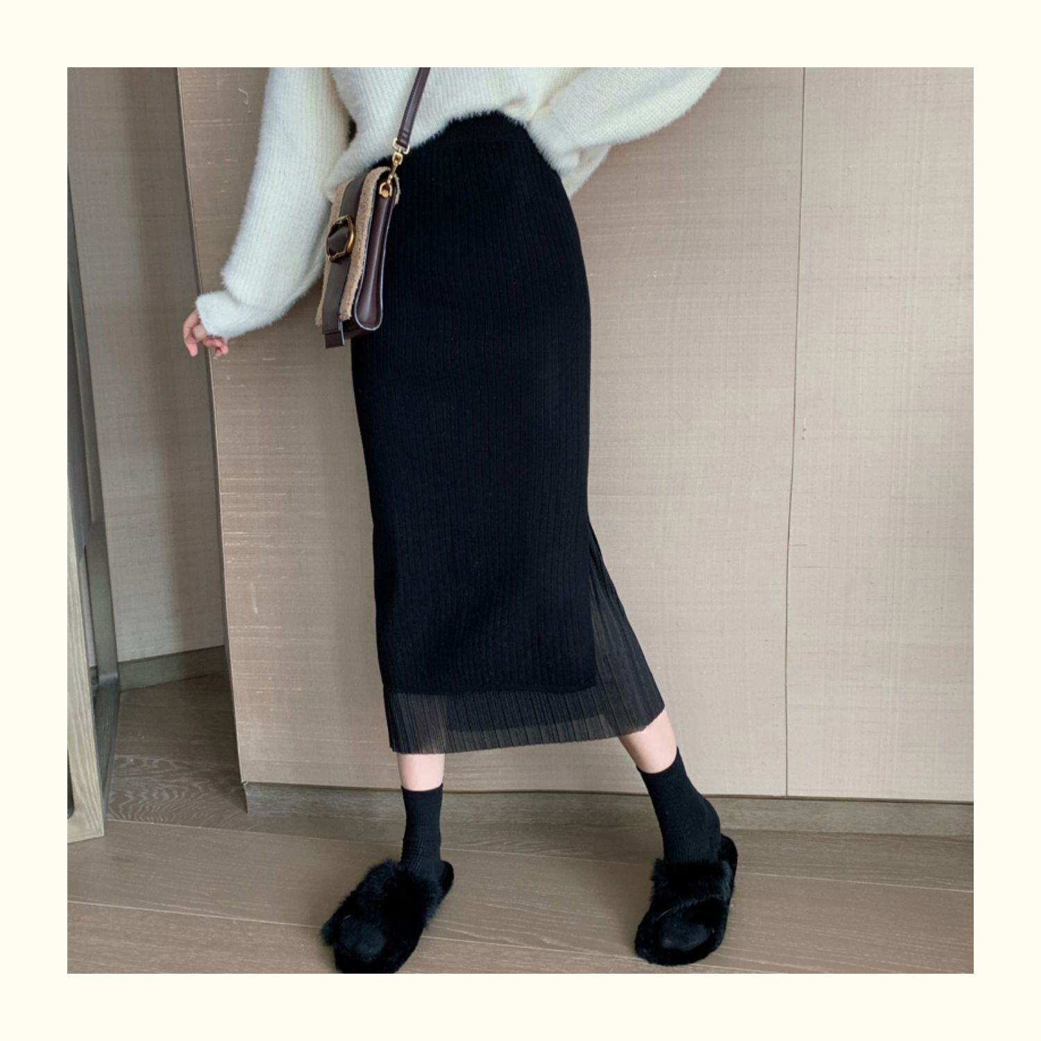 スカート ニットスカート 膝下 ミモレ丈 Iライン 切り替えデザイン プリーツ サイドスリット 切り替えデザイン 透け感 異素材MIX 大人可愛い シンプル 大人 上品 おしゃれ 大人女子 こなれ感 個性的 主役級 無地 秋 冬 10代 20代 30代 40代 オフィス 通勤 デート お出かけ 女子会 お泊まり 休日 イベント 普段使い 楽ちん 美脚 S M L 白 ホワイト 黒 ブラック