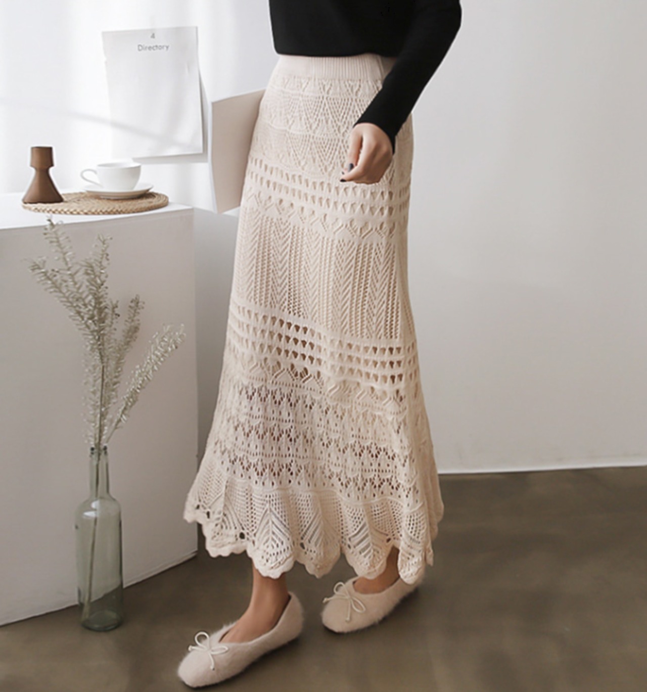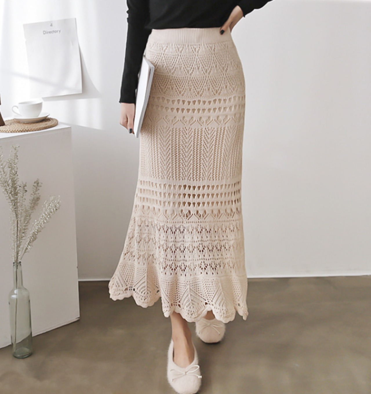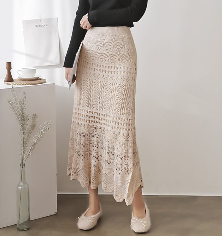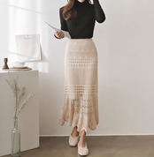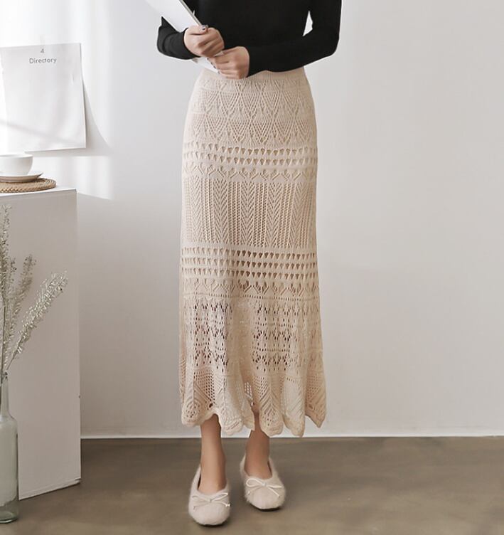 スカート ニットスカート ロング丈 ストレート Iライン 刺繍 編み込み かわいい 大人可愛い カジュアル 大人 大人女子 こなれ感 主役級 存在感 小花柄 春 夏 秋 10代 20代 30代 40代 レディース 女性用 通勤 デート お出かけ 女子会 お泊まり 休日 リゾート 旅行 海 プール 高原 着回し 普段使い 楽ちん S M L XL 2XL 3XL 4XL 5XL 6XL ブラック ベージュ