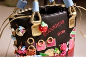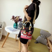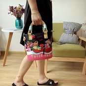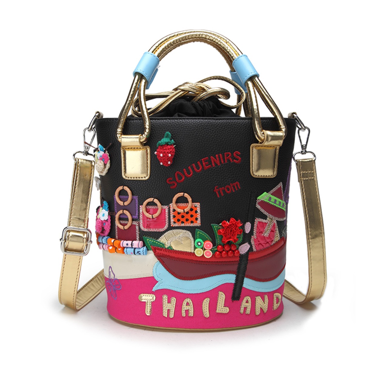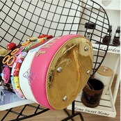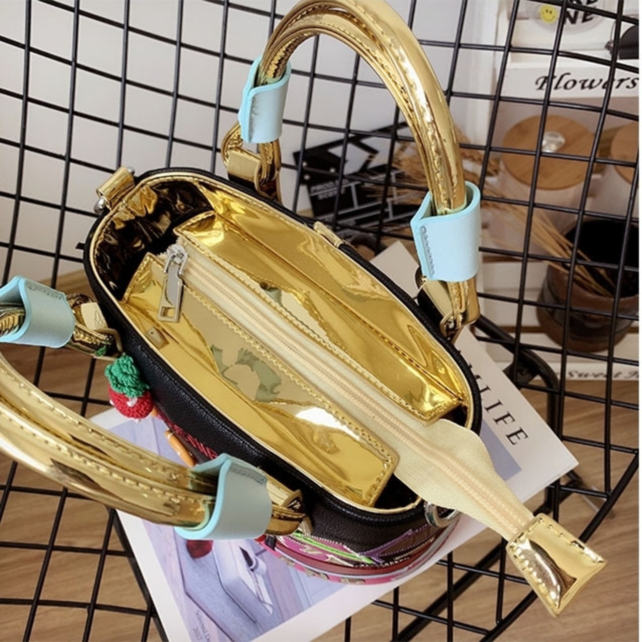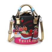 バッグ トートバッグ ハンドバッグ ショルダーバッグ 2Wayバッグ バケットタイプ カラフル ロゴ フォト風プリント PU ゴールドコーティング 装飾 かわいい フェミニン きれいめ カジュアル お出かけ デイリー ランチ カフェ 休日 レジャー ショッピング レディース