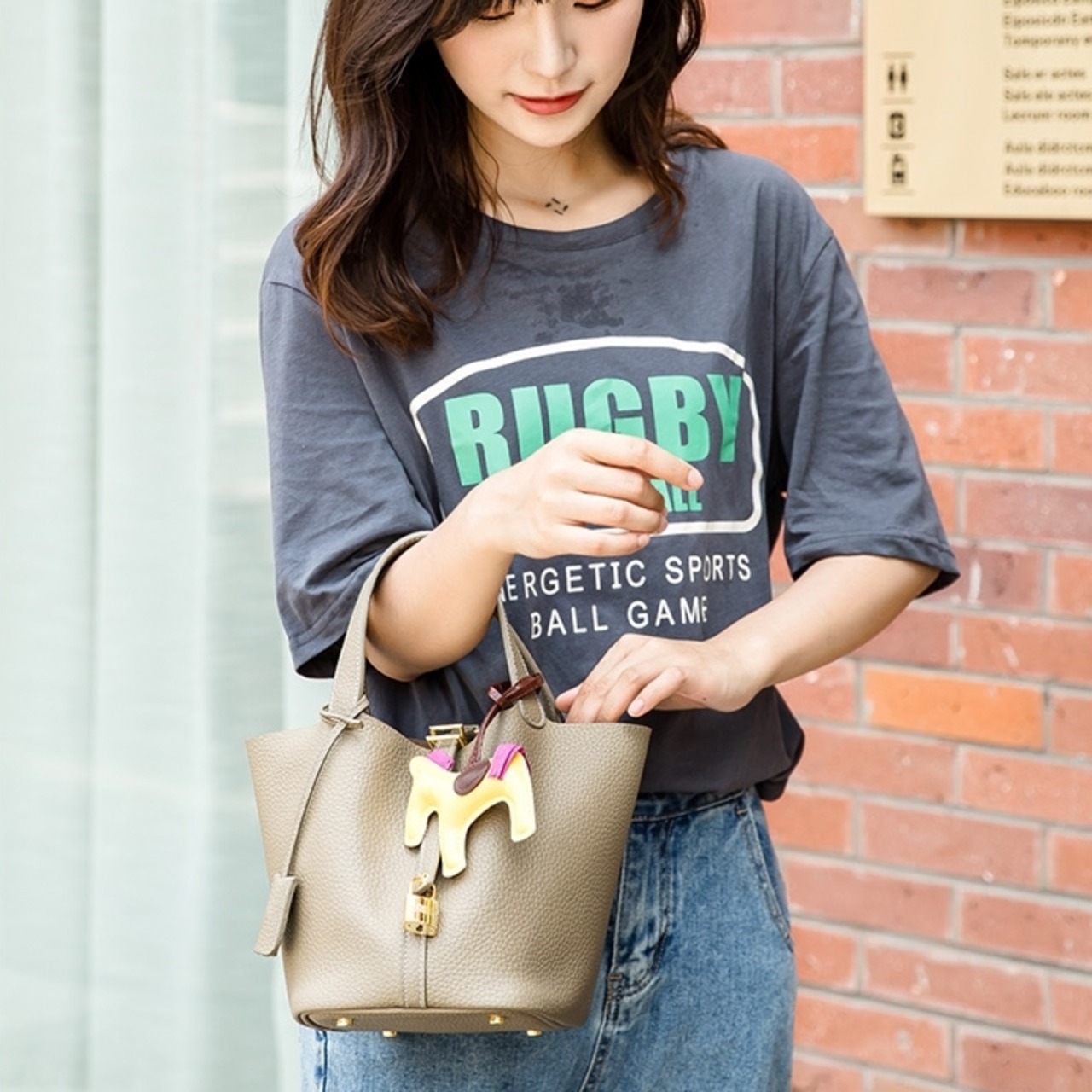 バッグ ハンドバッグ トートバッグ バケットバッグ チャーム バックル アニマル ポニー フェイクレザー PU ポーチ付き かわいい 柔らかい フェミニン カジュアル お出かけ デイリー デート ショッピング 女子会 旅行 レディース