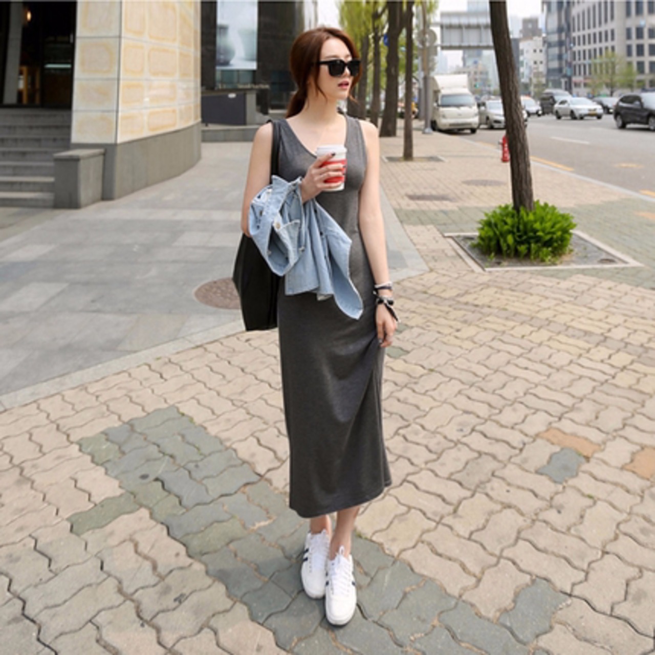 ワンピース ロング丈 9分丈 アンクル丈 ノースリーブ ラウンドネック スリム Iライン 伸縮性 シンプル カジュアル こなれ感 ラフ メンズライク マニッシュ ボーイッシュ スポーティー とろみ感 抜け感 春 夏 2022 2023 10代 20代 30代 40代 50代 60代 レディース 女性用 ママ マタニティ 女の子 お出かけ 休日 リゾート 旅行 海 ファッション コーデ スタイル 楽ちん 体系カバー M L XL 2XL 3XL 黒 ブラック 赤 レッド 灰色 グレー ワインレッド
