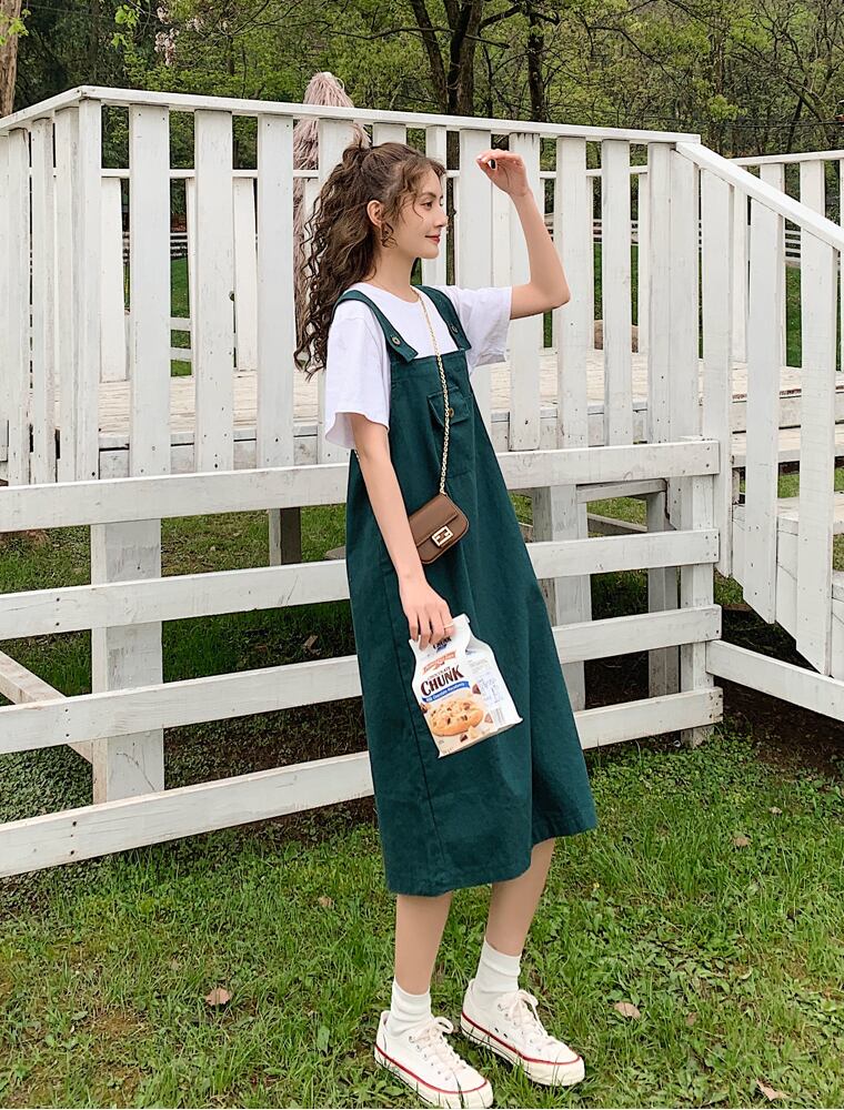 ワンピース ジャンパースカート ジャンスカ 膝丈 ひざ丈 膝下 ストレート Iライン 伸縮性 大人可愛い シンプル カジュアル おしゃれ お洒落 こなれ感 ラフ メンズライク ボーイッシュ スポーティー ラブリー キュート とろみ感 抜け感 春 夏 秋 冬 オールシーズン シーズンレス 2022 2023 10代 20代 30代 40代 50代 60代 レディース 女性用 女の子 お出かけ 休日 アウトドア ファッション コーデ スタイル 楽ちん S M L XL 赤 レッド 緑 グリーン イエロー
