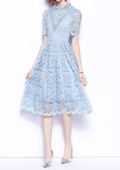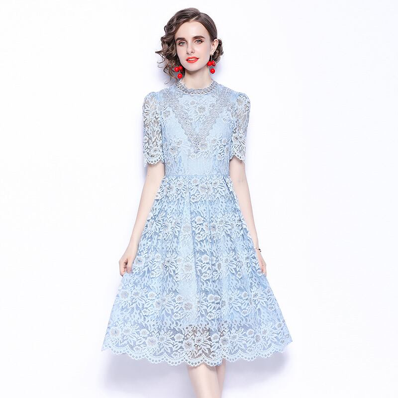ワンピース フレアワンピース 膝丈 ひざ丈 膝下 袖あり 半袖 ハイネック フレア セミフレア レース 透け感 大人可愛い きれいめ おしゃれ お洒落 ラブリー キュート ガーリー エレガント 主役級 存在感 春 夏 秋 冬 オールシーズン シーズンレス 二次会 2022 2023 10代 20代 30代 レディース 女性用 デート お出かけ 女子会 休日 アウトドア パーティー イベント ホテル ガーデン レストラン ファッション コーデ スタイル モテ S M L XL 2XL 水色