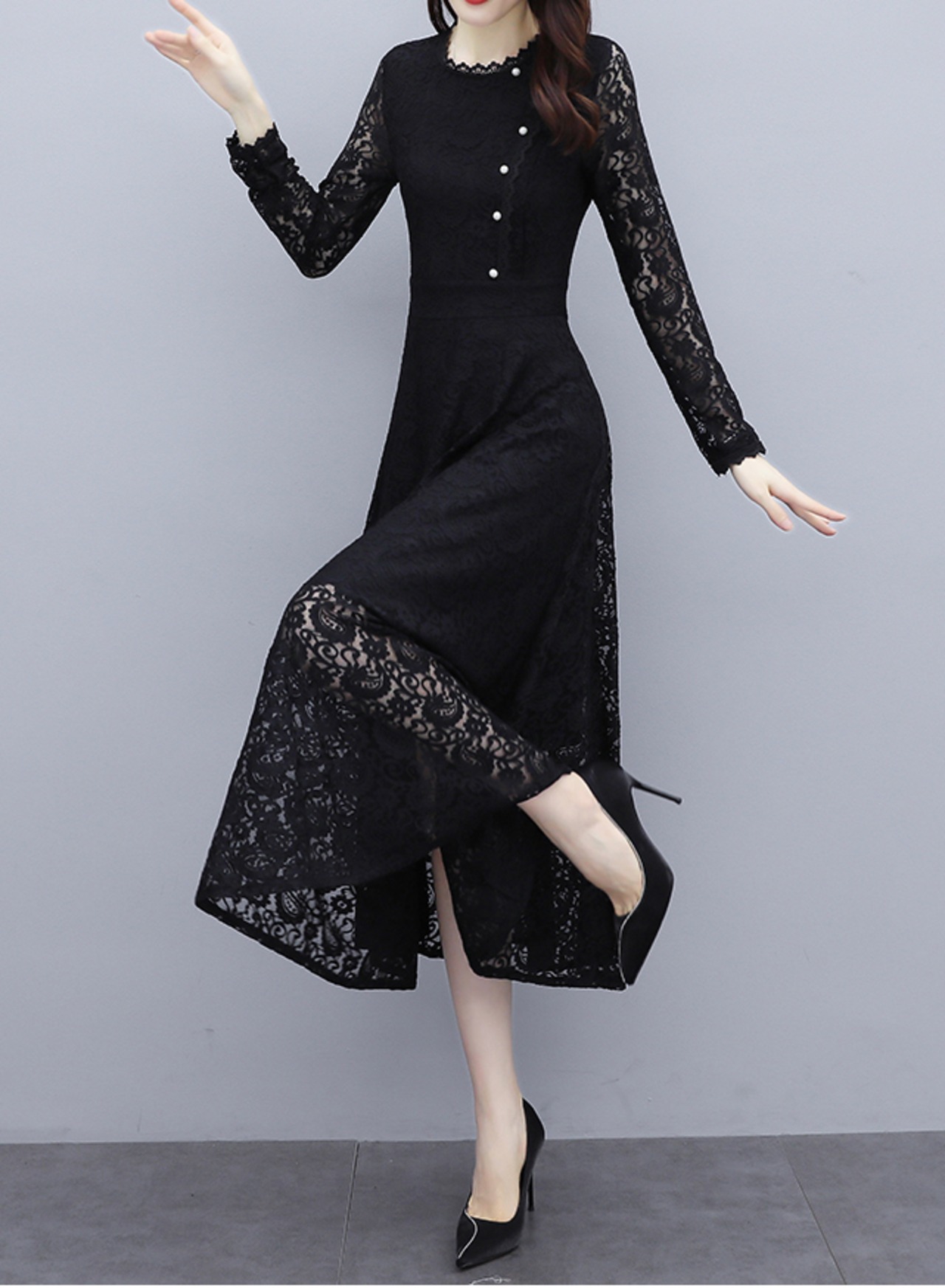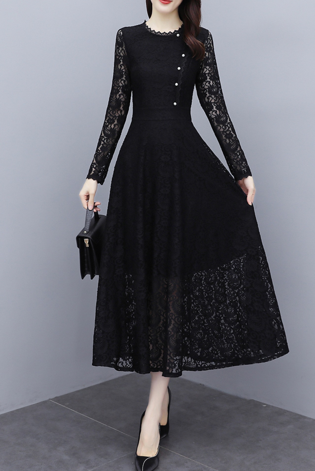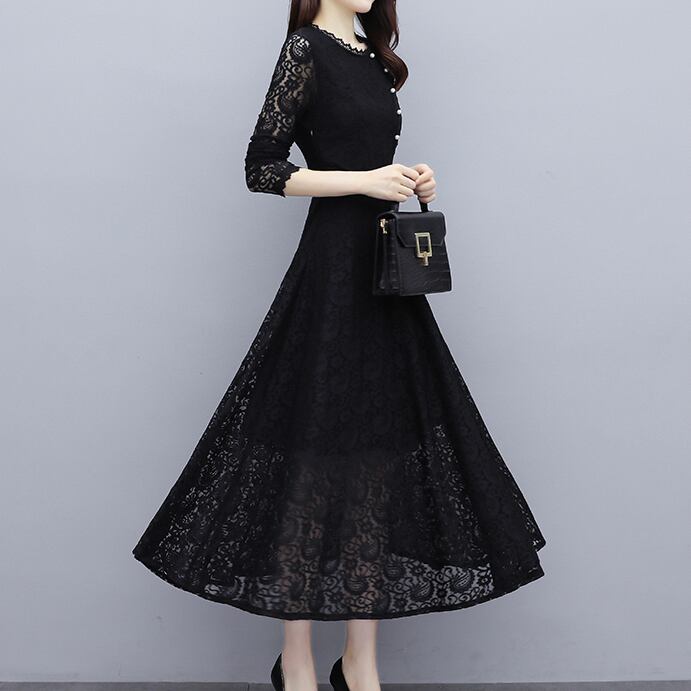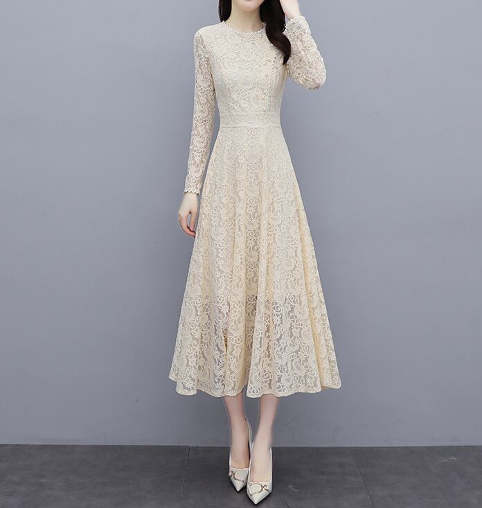 ワンピース ワンピドレス ミモレ ミモレ丈 袖あり 長袖 ラウンドネック フレア セミフレア Aライン レース 大人可愛い きれいめ 上品 おしゃれ お洒落 大人女子 クール モード系 セクシー エレガント 主役級 存在感 フォーマル 春 夏 秋 冬 オールシーズン シーズンレス 二次会 2022 2023 10代 20代 30代 40代 50代 60代 レディース 女性用 ファッション コーデ スタイル モテ M L XL 2XL 3XL 4XL 白 ホワイト 黒 ブラック