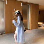ペールカラーと透け感がおしゃれなロング丈のシャツです。