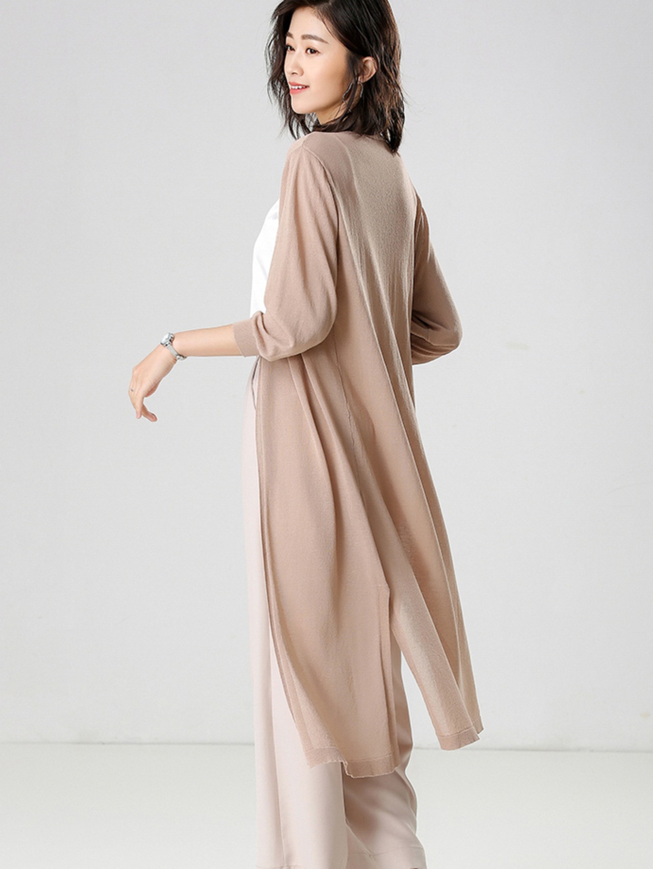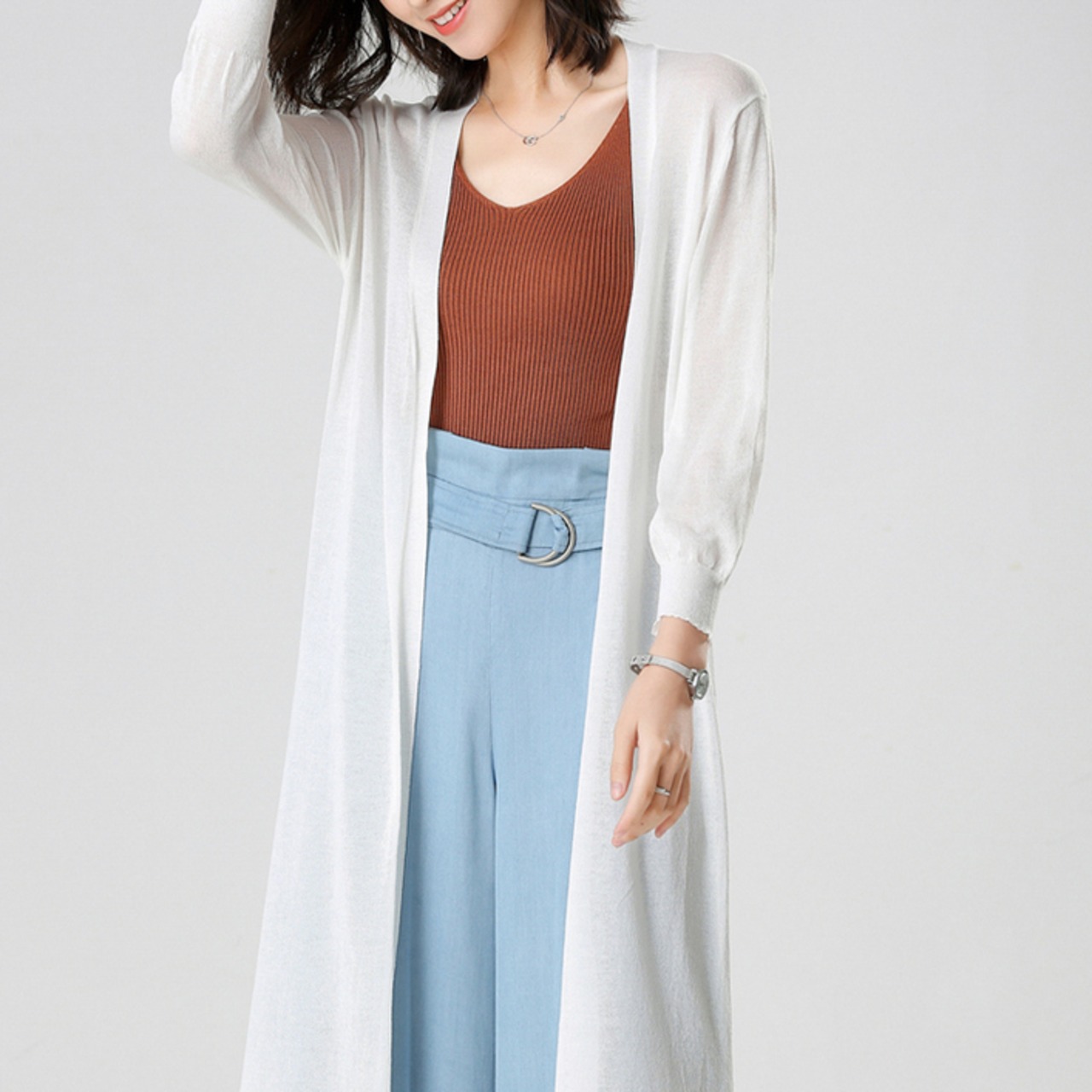 トップス アウター カーディガン 膝下 ミモレ ミモレ丈 袖あり 7分袖 七分袖 ストレート Iライン 前開き 透け感 シースルー 伸縮性 大人可愛い きれいめ シンプル カジュアル 大人 上品 おしゃれ お洒落 大人女子 こなれ感 ラフ とろみ感 抜け感 無地 春 夏 2022 2023 10代 20代 30代 40代 50代 60代 レディース 女性用 S M L XL 2XL 3XL 4XL 白 ホワイト 黒 ブラック 青 ブルー 緑 グリーン 灰色 グレー ベージュ ピンク 水色 ワインレッド