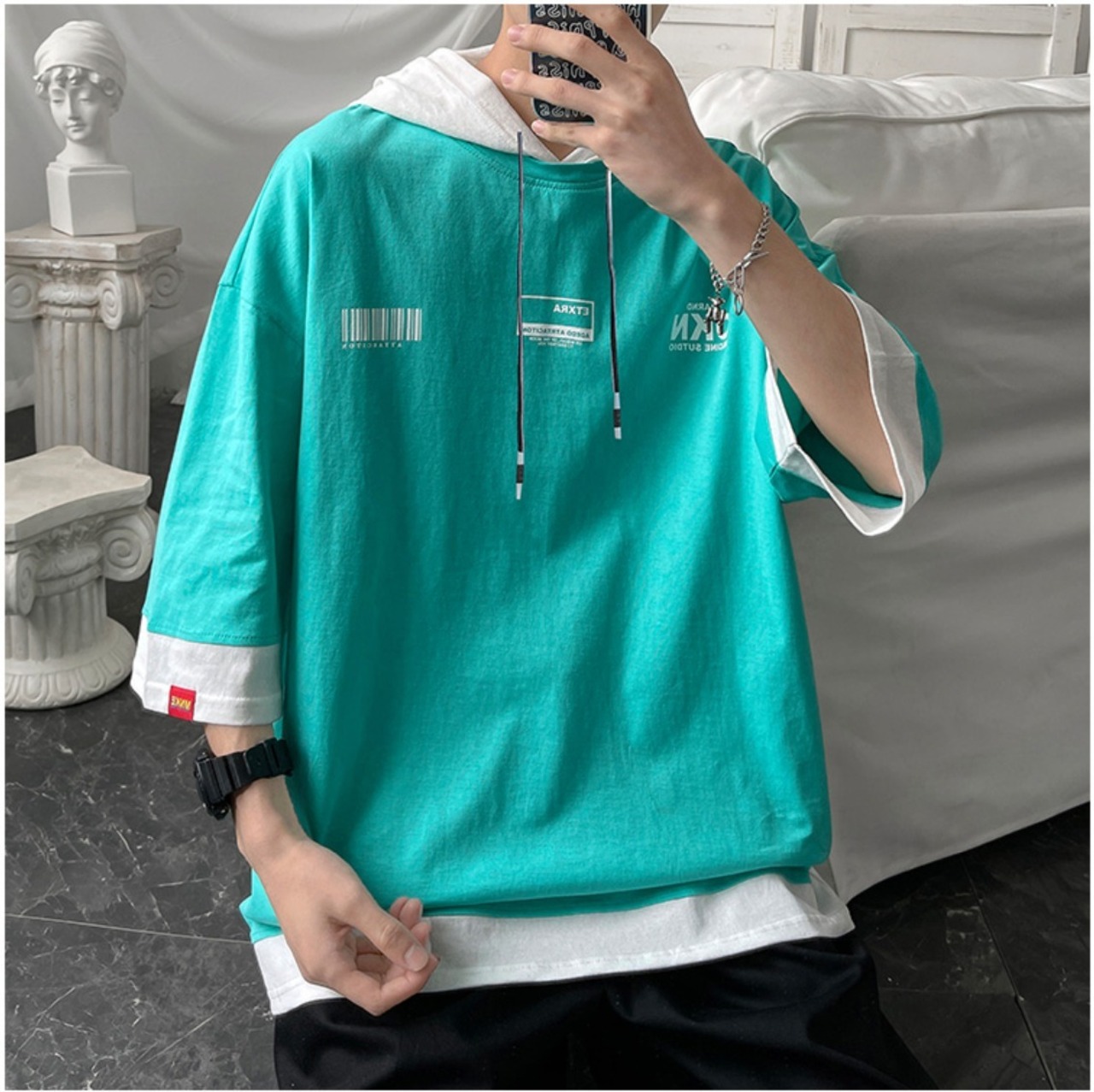 重ね着風のデザインがお洒落なメンズTシャツです。