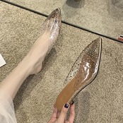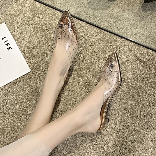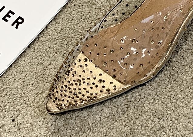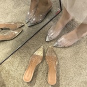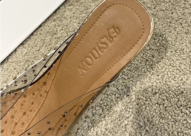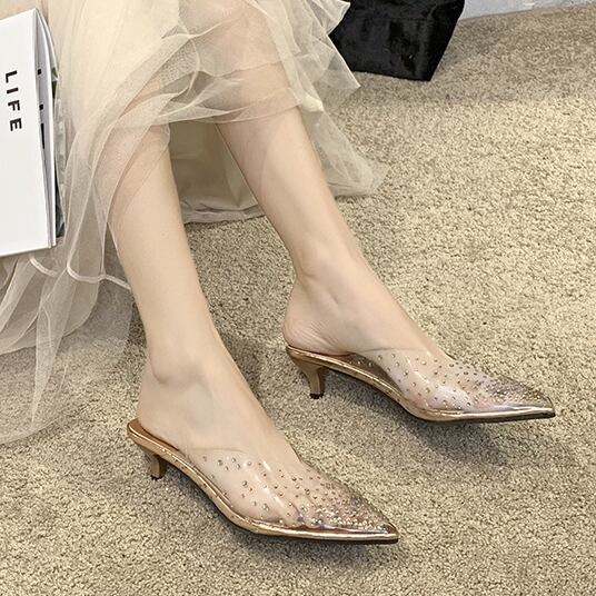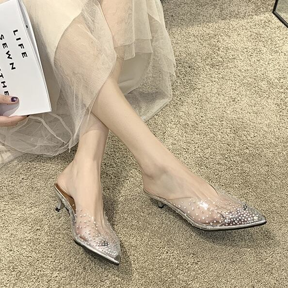 クリアカラーにビジューが美しく輝くおしゃれなミュール。