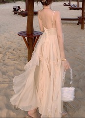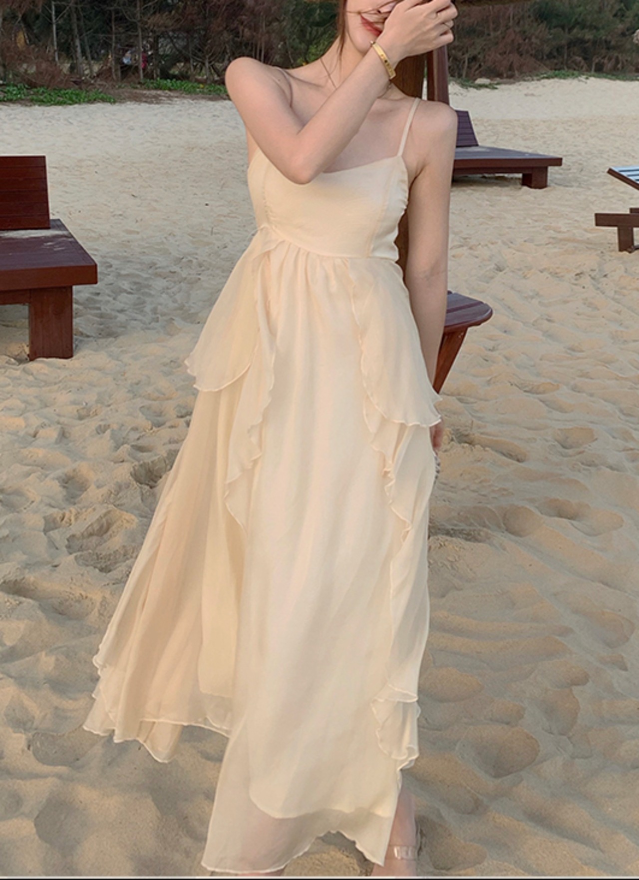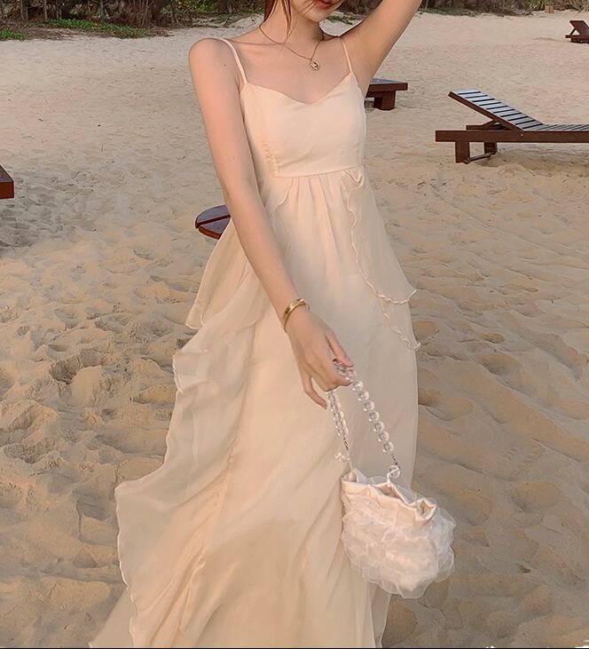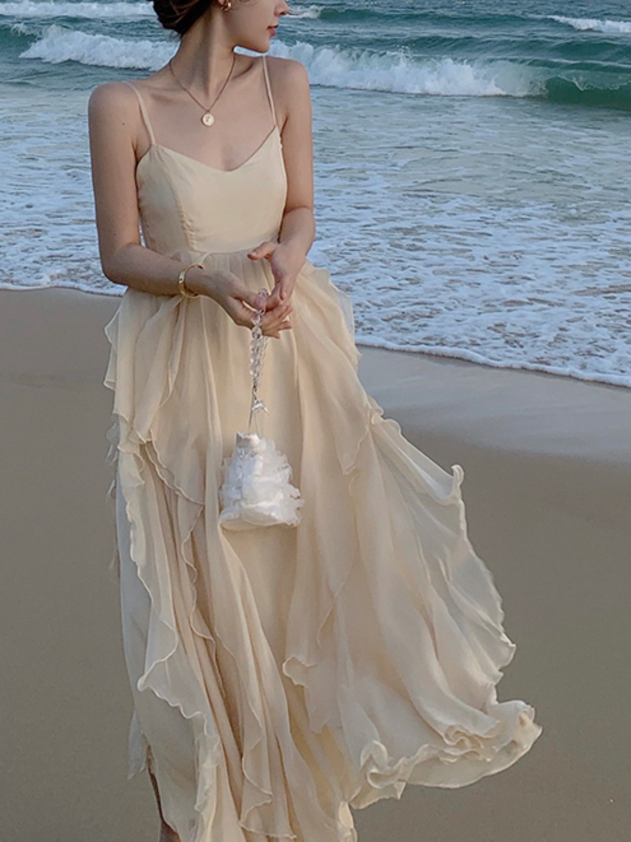 歩くたび揺れるスカートがフェミニンなサマードレス。