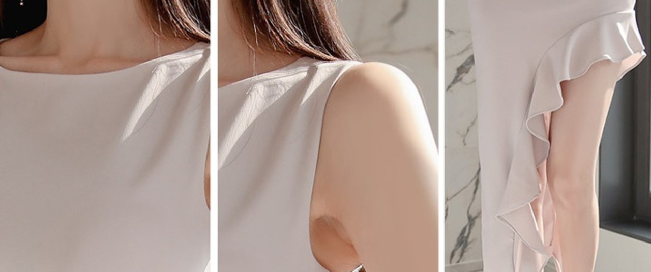 存在感抜群のアシンメトリーデザインがセクシーなノースリーブワンピ♪