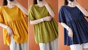 ゆったりシルエットですが胸下の細かいギャザーですっきり見えます♪