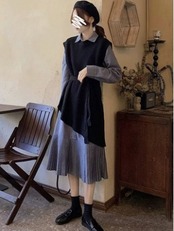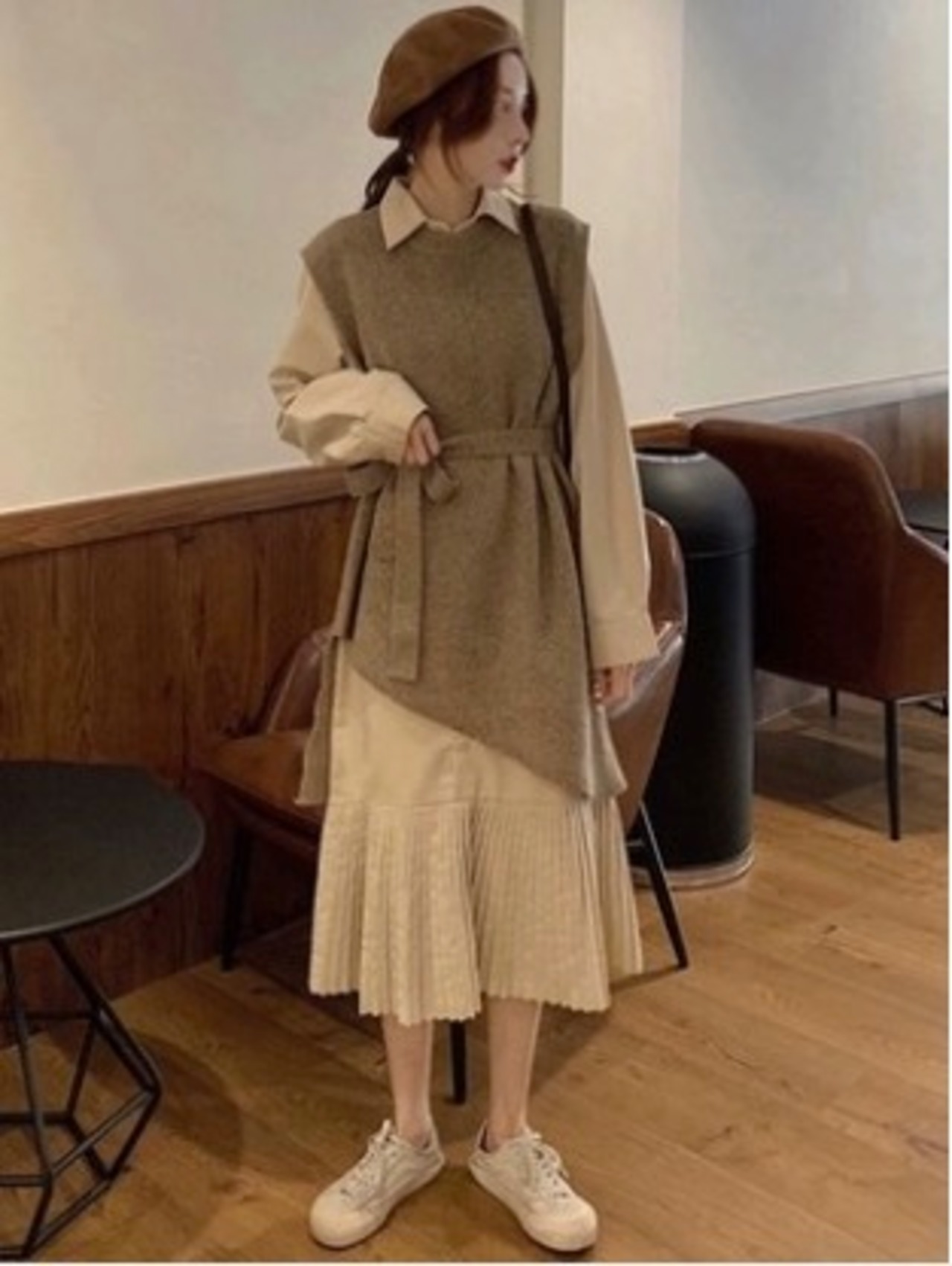 シャツワンピースとジレのフレンチスタイルツーピースです。