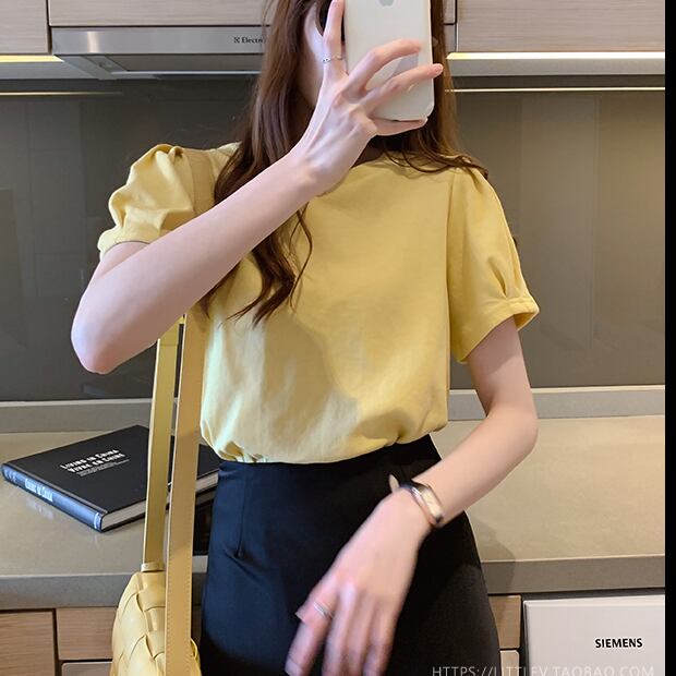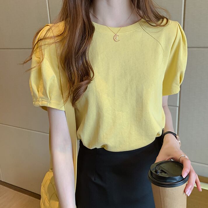 ふっくらとしたタック入りのパフスリーブがおしゃれな半袖Tシャツ。