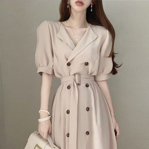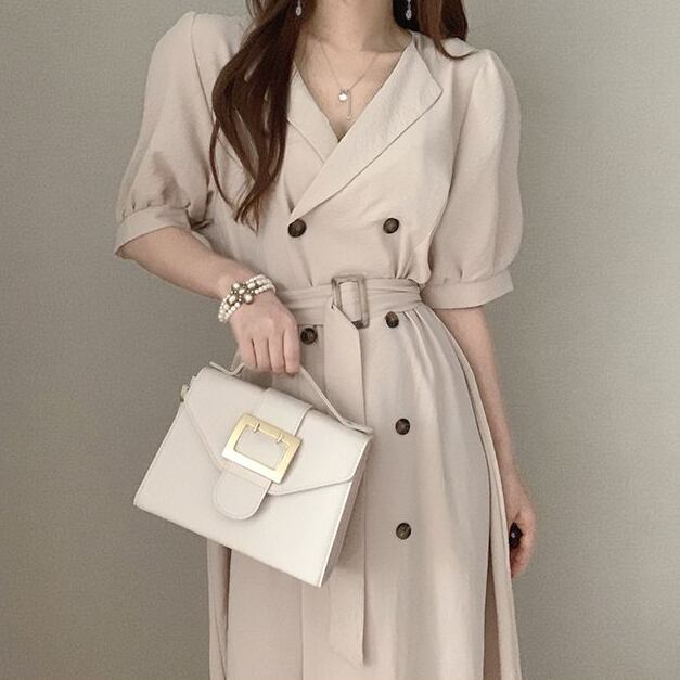 トレンチワンピ ワンピース Aライン 半袖 パフスリーブ ウエストマーク ハイウエスト ダブルブレスト かわいい 大人可愛い きれいめ シンプル カジュアル 大人 上品 おしゃれ フェミニン かっこいい 大人カジュアル 大人女子 キュート 個性的 主役級 存在感 シック 春 夏 レディース OL 学生 デート お出かけ 女子会 お泊まり 休日 イベント 旅行 着回し 普段使い スタイルアップ コーデ モテ 体系カバー 美脚 脚長 きちんと感