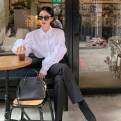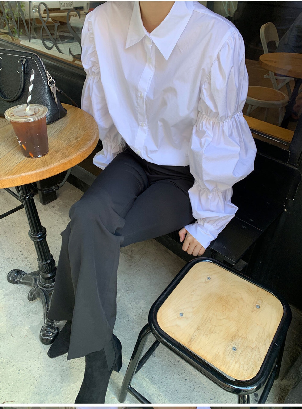 トップス ブラウス 白トップス 袖あり 長袖 ボリューム袖 襟付き 前開き きれいめ シンプル カジュアル 大人 上品 おしゃれ お洒落 かっこいい ラフ メンズライク マニッシュ ボーイッシュ 個性的 クール モード系 エレガント 主役級 存在感 とろみ感 抜け感 春 夏 秋 冬 オールシーズン シーズンレス 2022 2023 10代 20代 30代 40代 レディース 女性用 女の子 デート お出かけ 女子会 休日 ファッション コーデ スタイル フリーサイズ 白 ホワイト