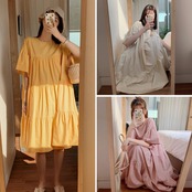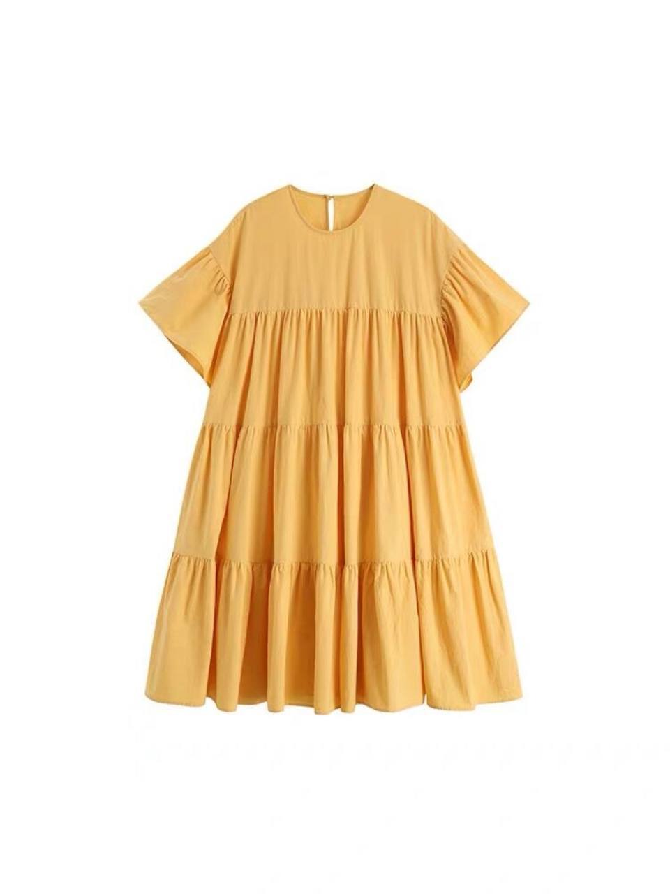 ワンピース フレアワンピース ティアードワンピース 膝丈 ひざ丈 膝下 ミディアム丈 袖あり 5分袖 五分袖 ボリューム袖 フレアスリーブ ドロップショルダー クルーネック フレア ワイド Aライン ギャザー かわいい 大人可愛い きれいめ シンプル カジュアル 大人 上品 おしゃれ お洒落 大人女子 こなれ感 ラフ ラブリー キュート ガーリー ルーズ エレガント フェミニン ロマンチック 無地 春 夏 秋 レディース 女性用 着回し 普段使い 楽ちん モテ 体系カバー プチプラ 安い ゆったり ゆる