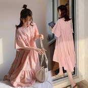 優しい色味とボリューム感のあるシルエットが可愛い、フレアワンピースです。