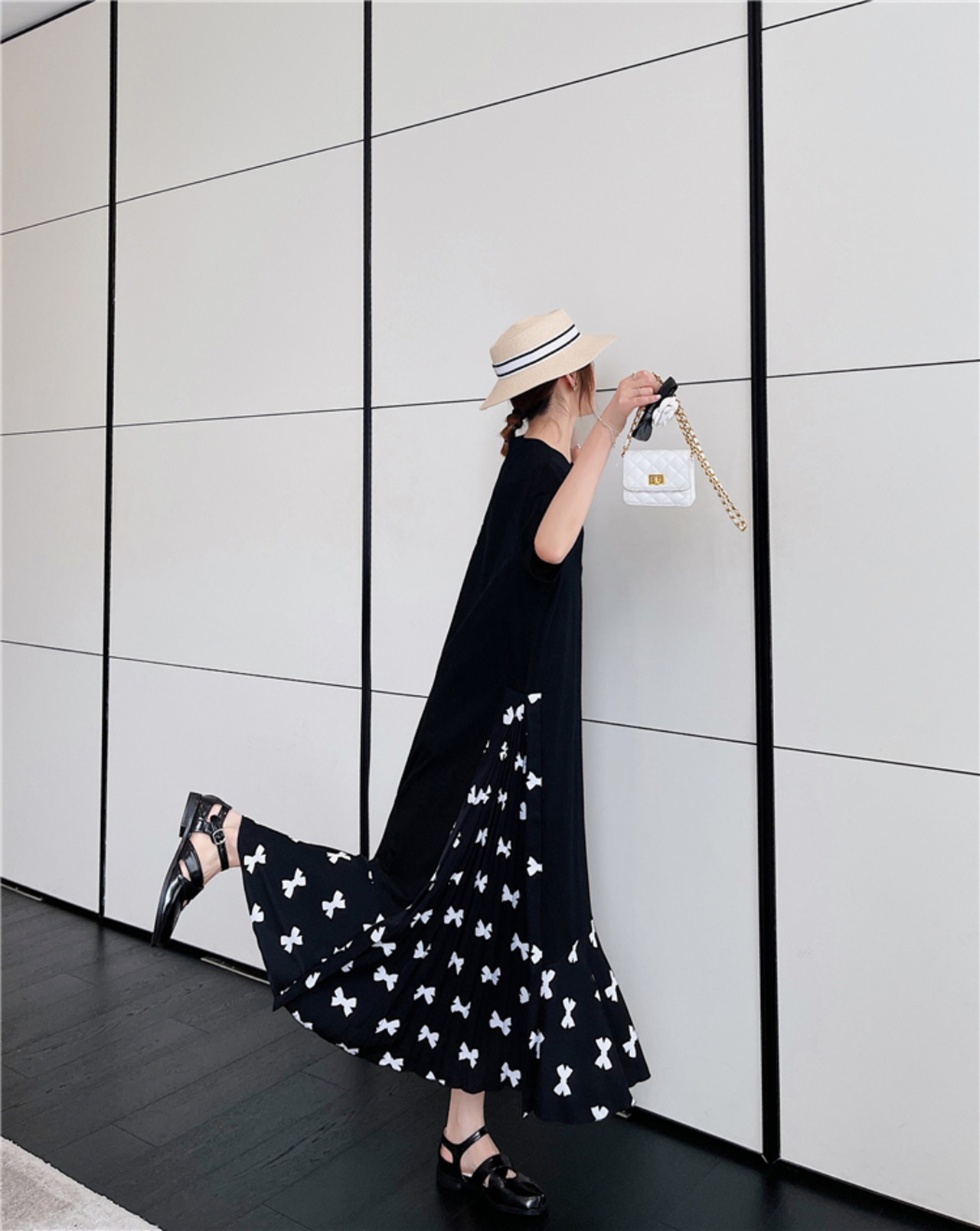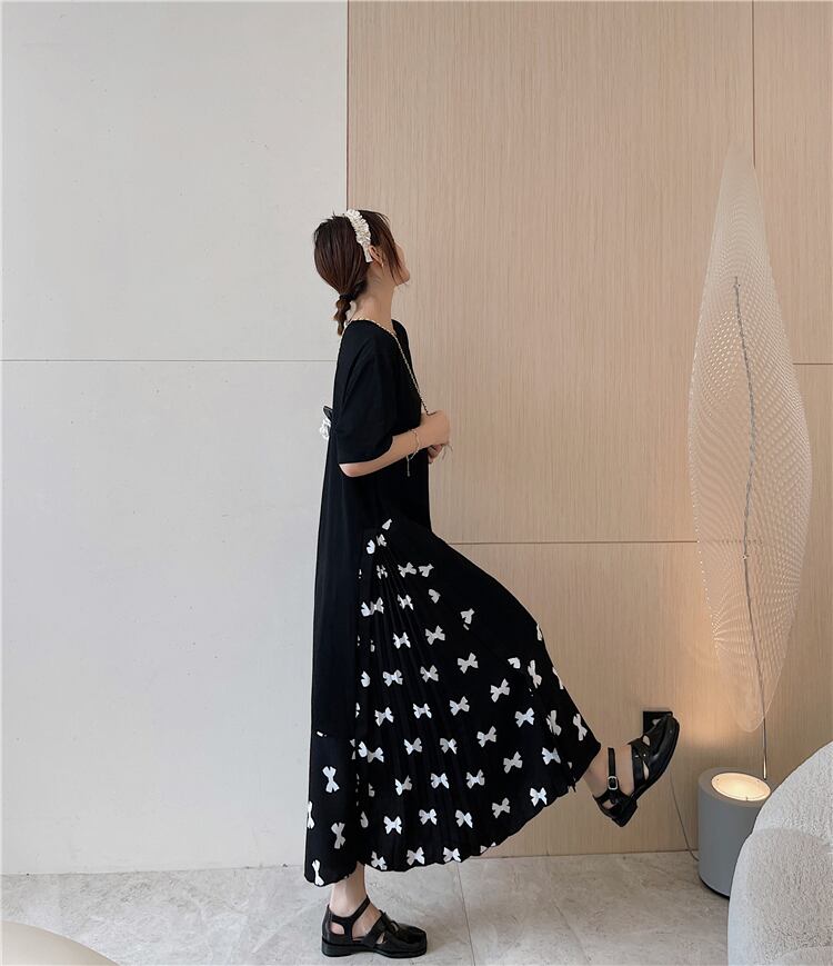 ワンピース Tシャツワンピース ロング ロング丈 マキシ マキシ丈 袖あり 5分袖 五分袖 クルーネック セミフレア ワイド Aライン Iライン プリーツ ドッキング かわいい 大人可愛い きれいめ シンプル カジュアル 大人 上品 おしゃれ お洒落 大人女子 こなれ感 ラフ ラブリー キュート ルーズ エレガント とろみ感 フェミニン ロマンチック 柄 総柄 春 夏 秋 レディース 女性用 着回し 普段使い 楽ちん モテ 体系カバー 大きいサイズ 大きめ ゆったり ゆる プラスサイズ