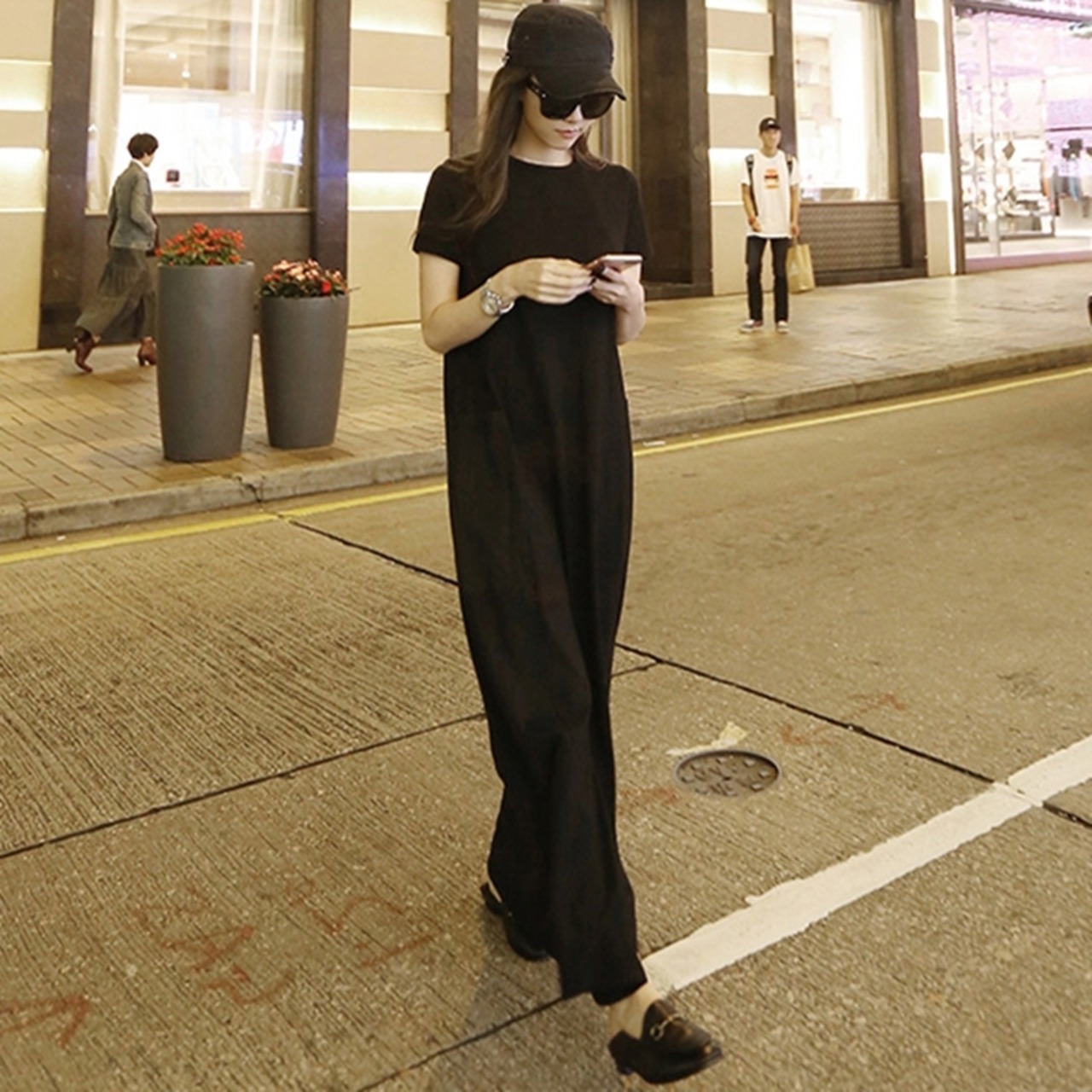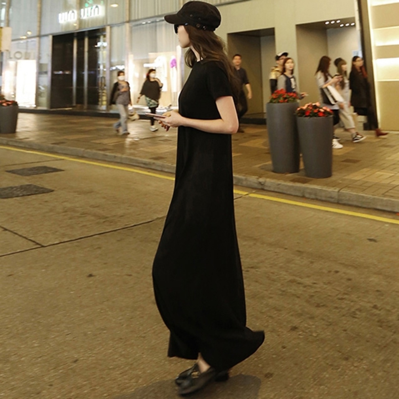 ワンピース ロング ロング丈 マキシ マキシ丈 アンクル丈 袖あり 半袖 ラウンドネック 細身 ストレート Iライン きれいめ シンプル カジュアル 大人 上品 おしゃれ お洒落 大人女子 こなれ感 ラフ メンズライク マニッシュ ボーイッシュ スポーティー とろみ感 抜け感 春 夏 秋 2022 2023 10代 20代 30代 40代 50代 60代 レディース 女性用 お出かけ 休日 アウトドア 旅行 海 プール S M L XL 2XL 3XL 黒 ブラック