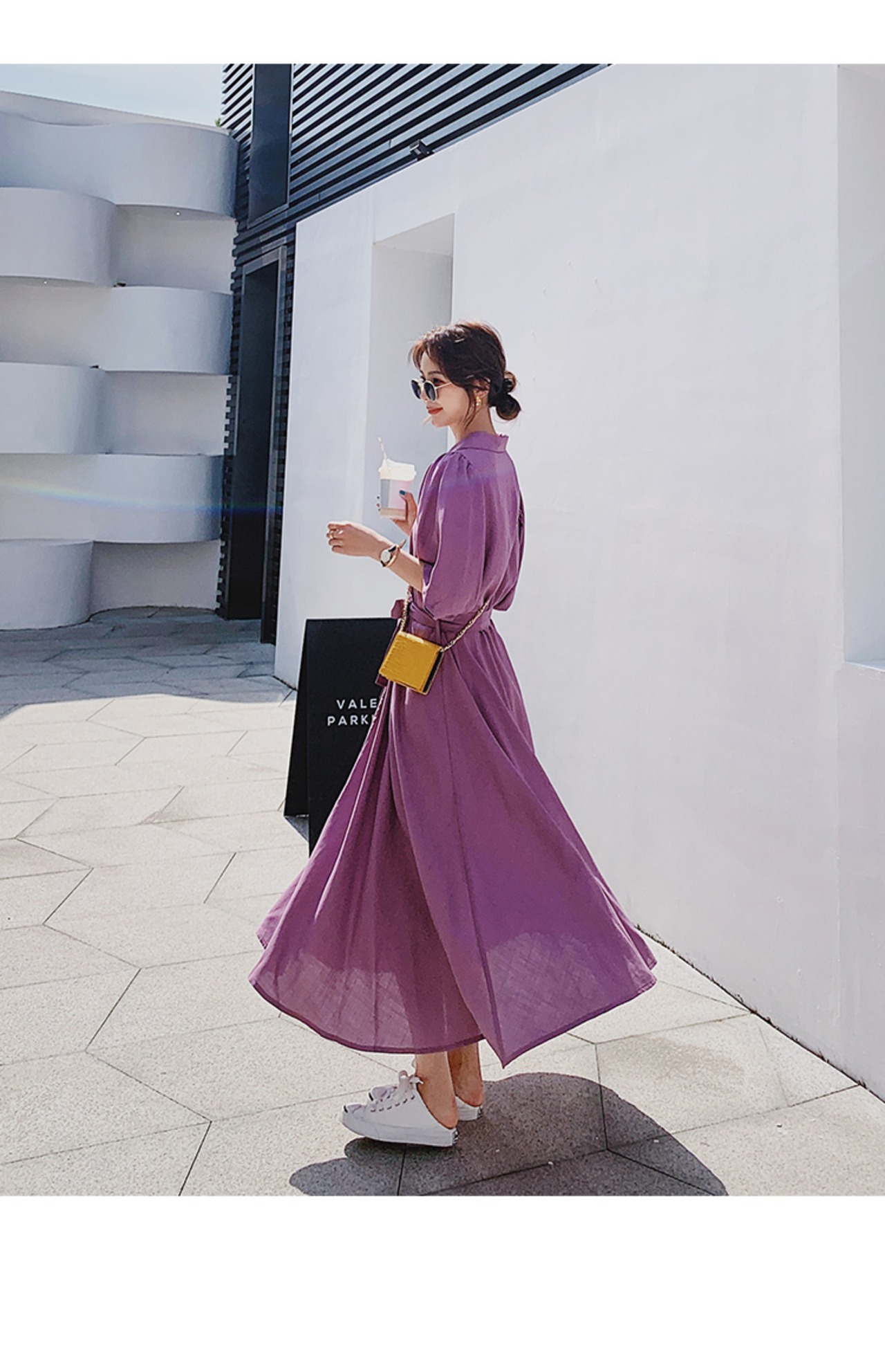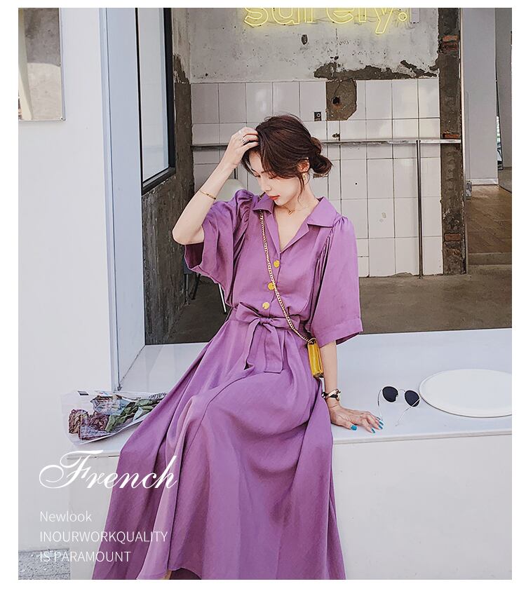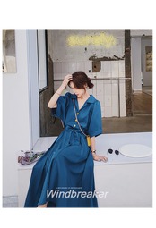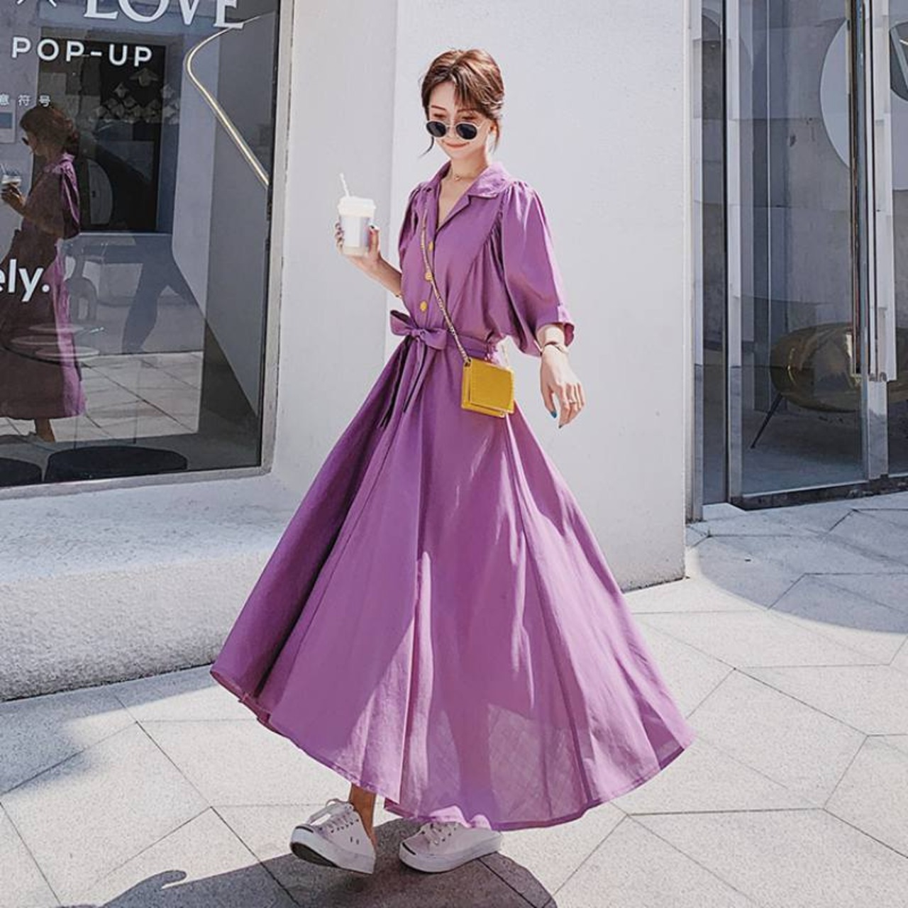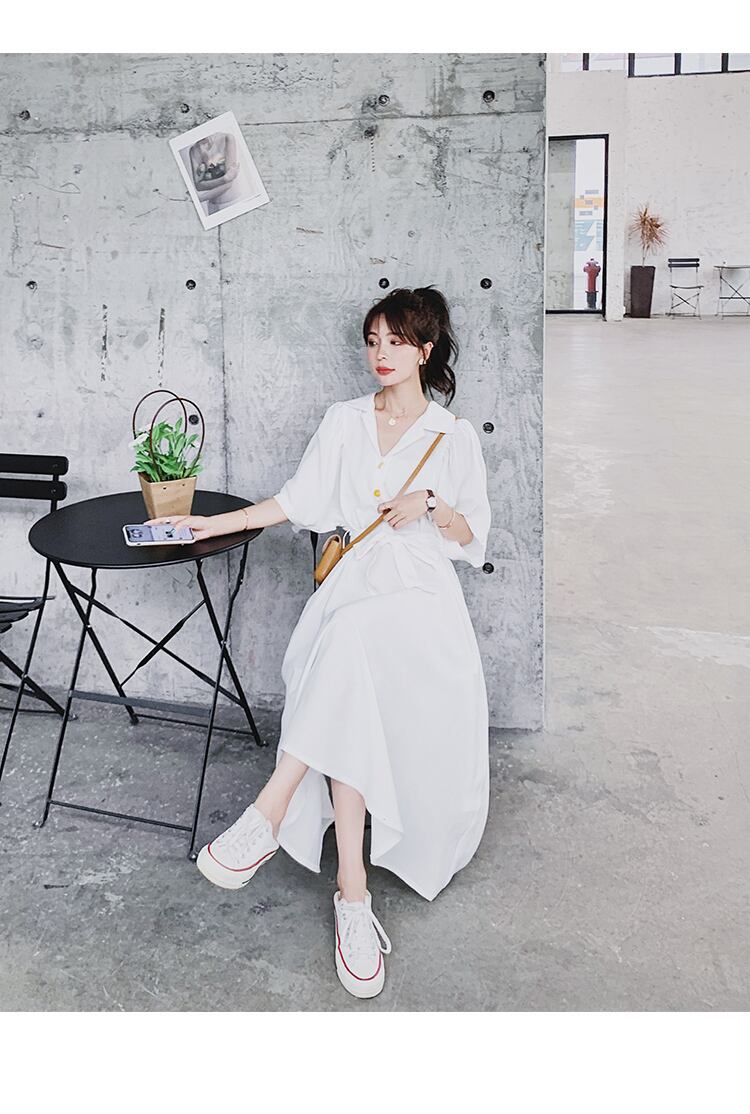 ワンピース シャツワンピース フレアワンピース ロング丈 マキシ丈 袖あり 7分袖 七分袖 ボリューム袖 ドルマンスリーブ バットスリーブ Vネック 襟付き ノッチラペル ショールカラー フレア Aライン リボン ウエストマーク ウエストリボン ハイウエスト ボタン かわいい 大人可愛い きれいめ シンプル カジュアル 大人 上品 おしゃれ お洒落 レトロ 大人女子 こなれ感 キュート ガーリー エレガント フェミニン ロマンチック 無地 春 夏 デート お出かけ 普段使い モテ 体系カバー 美脚 脚長
