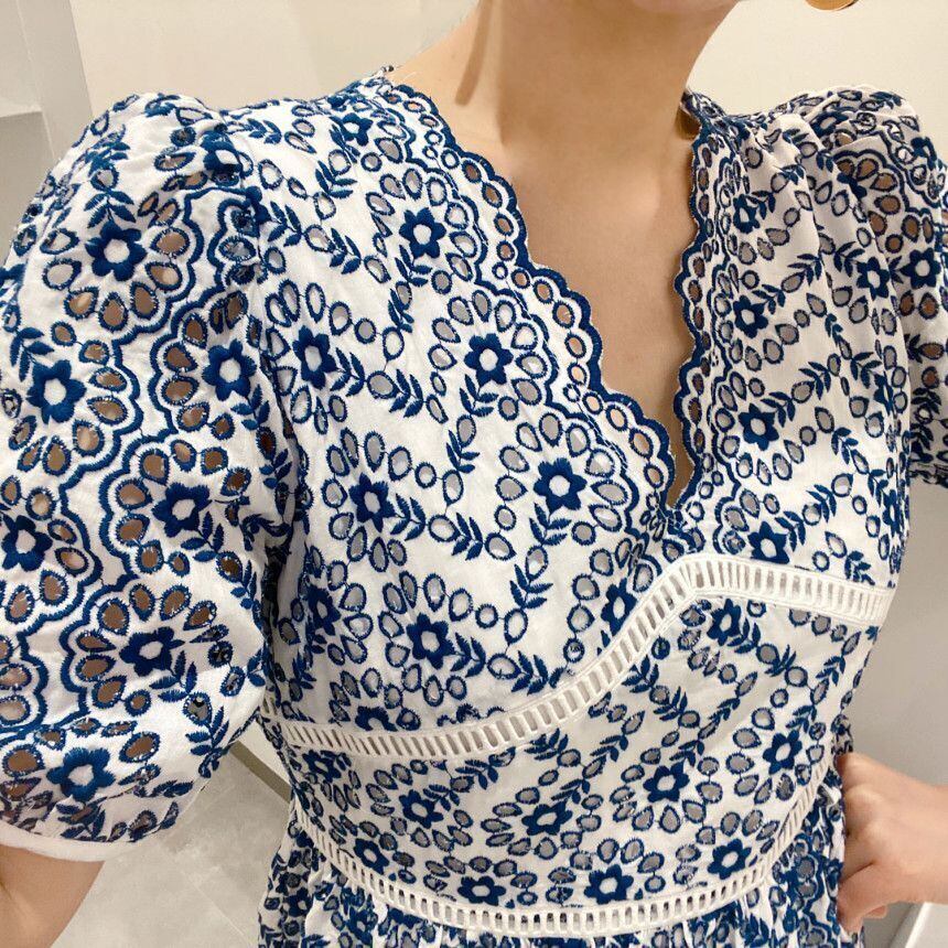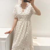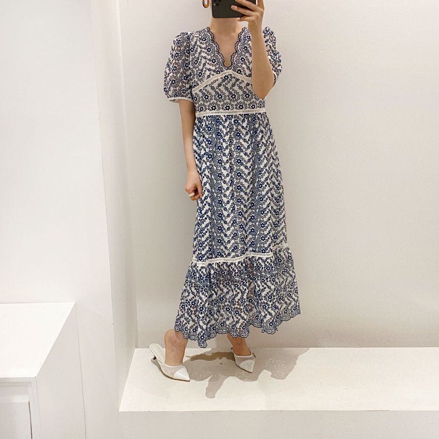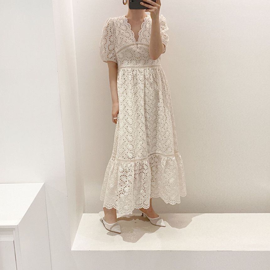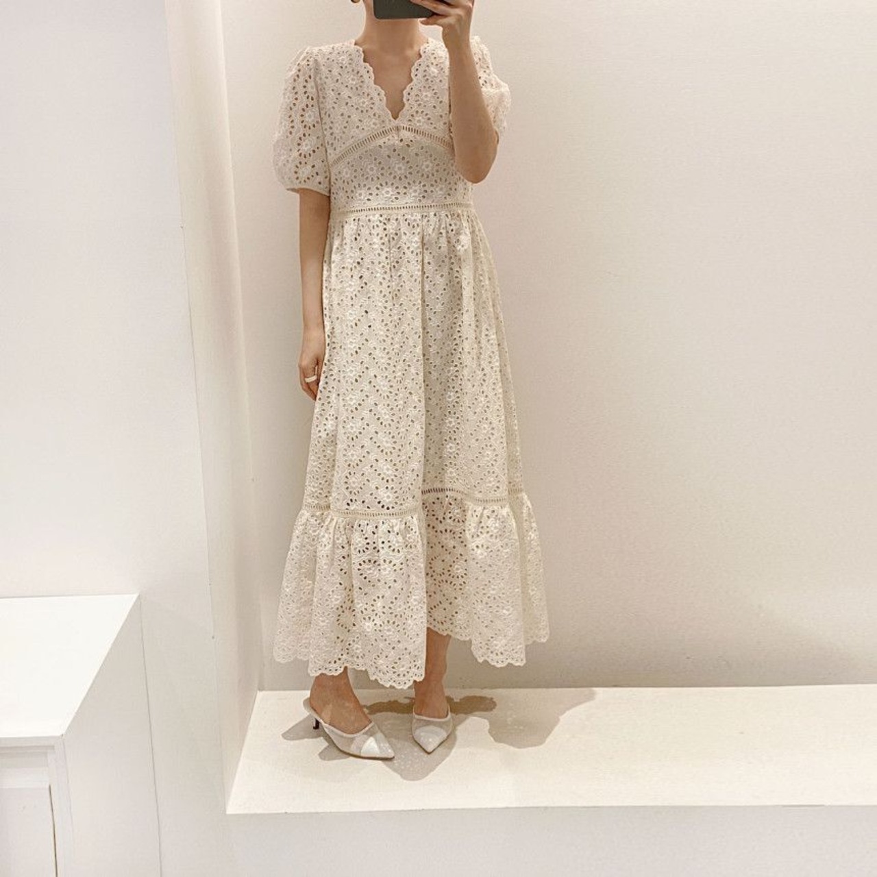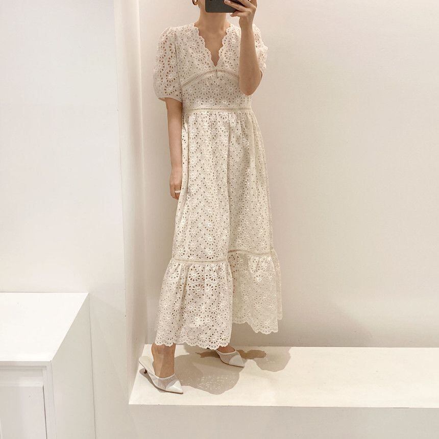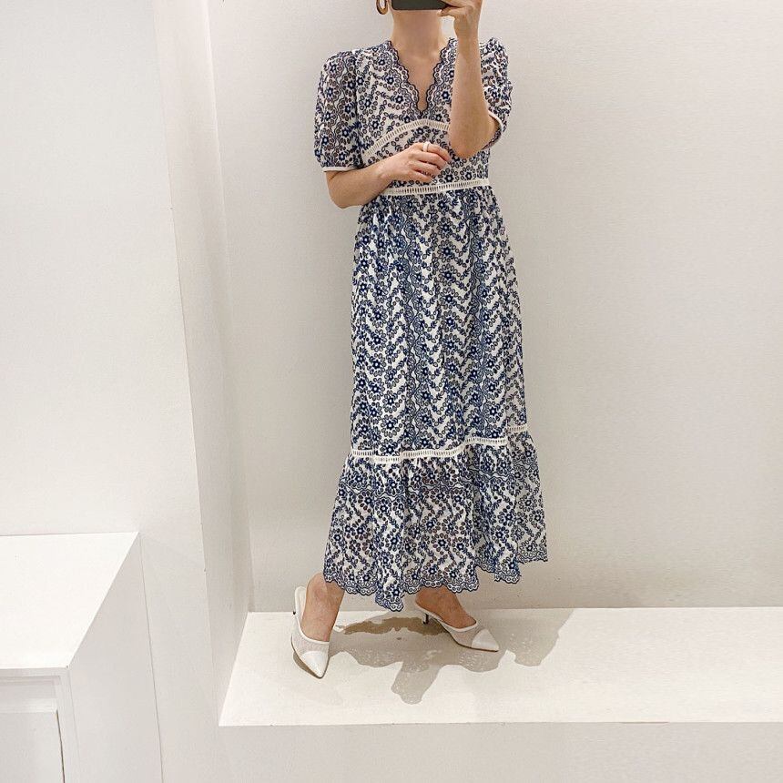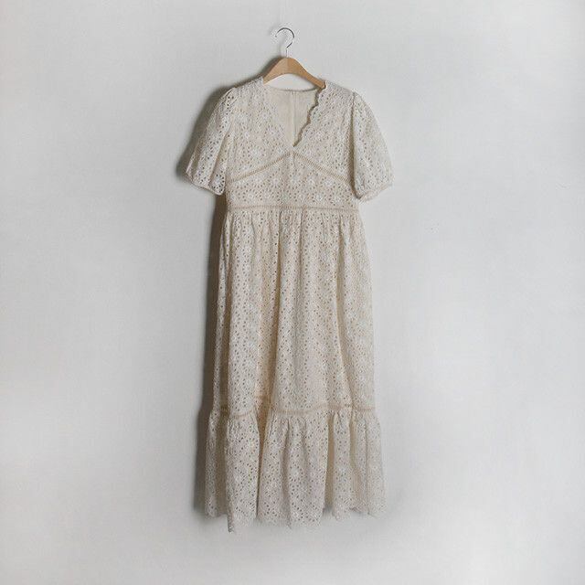 花柄のパンチングレースがロマンチックで可愛いフレアワンピースです。