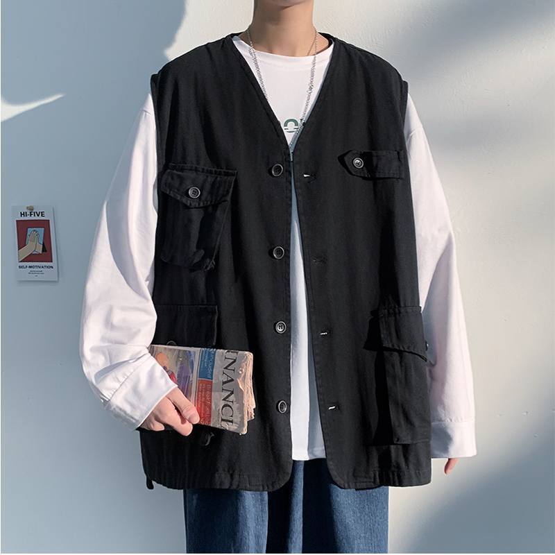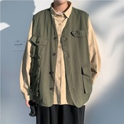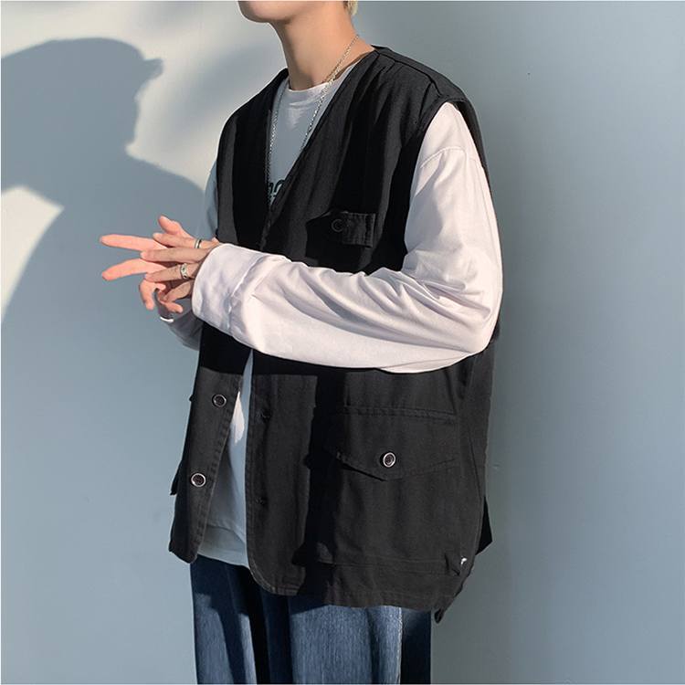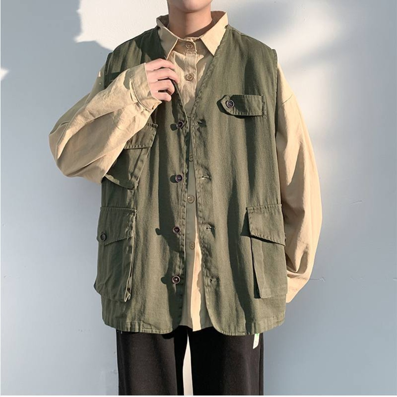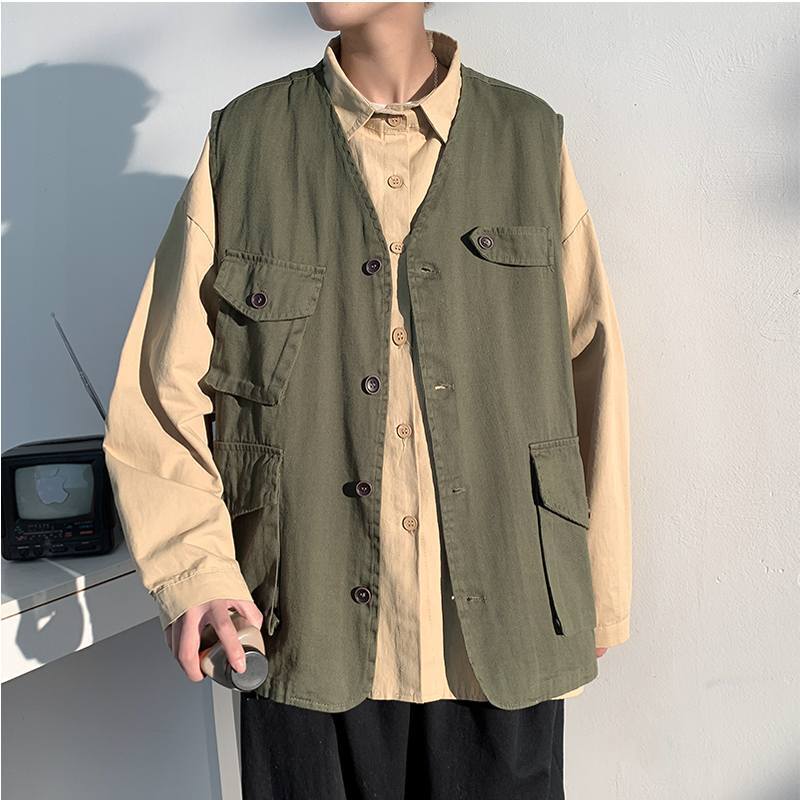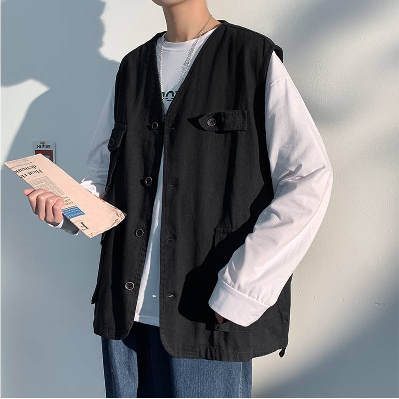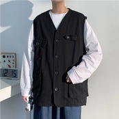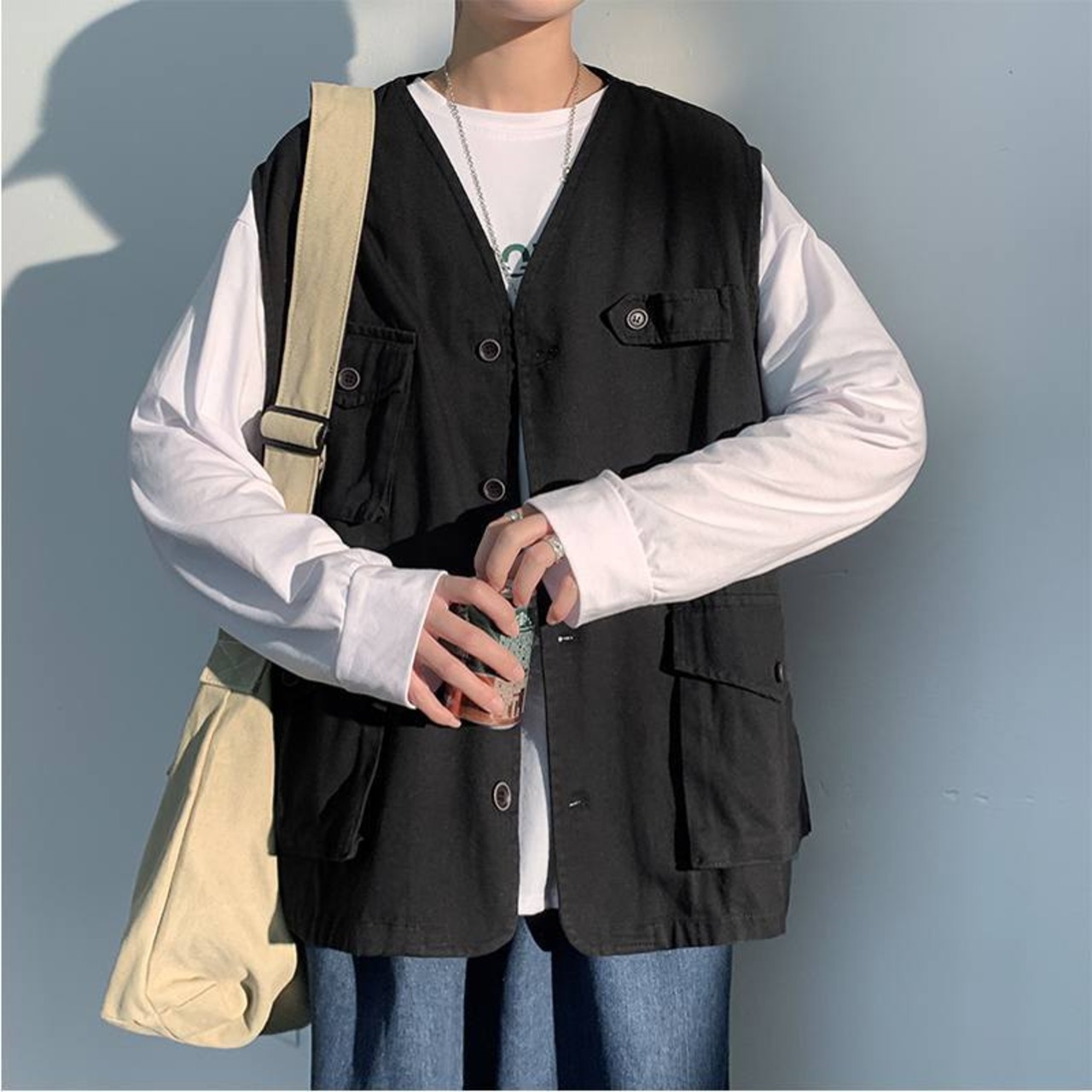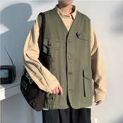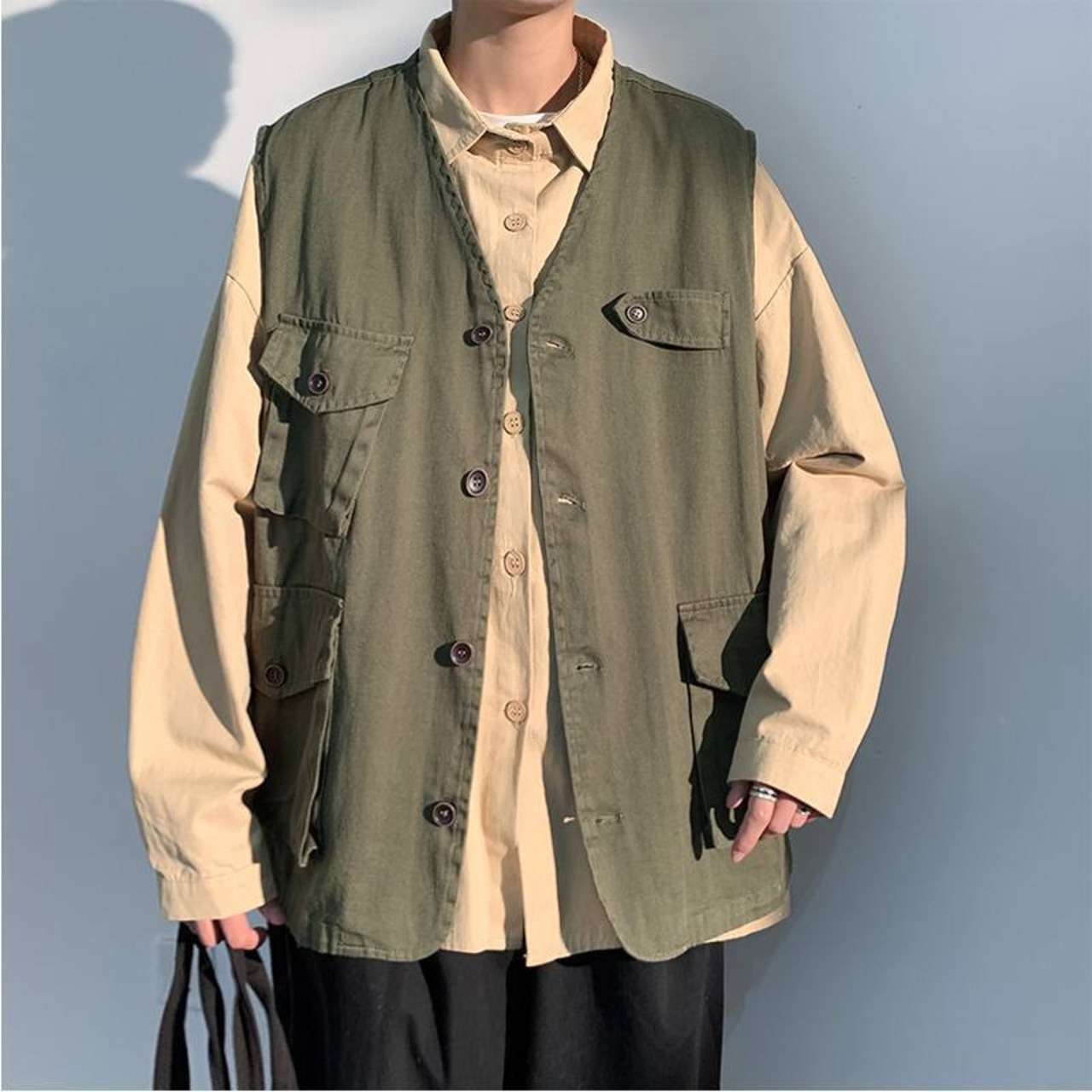 アンサンブル トップス アウター ベスト ジャケット 上着 袖なし ノースリーブ Vネック 襟なし ワイド ポケット 前開き ボタン シンプル カジュアル 大人 おしゃれ お洒落 かっこいい レトロ こなれ感 ラフ クール エレガント ヴィンテージ 無地 春 秋 メンズ 男性用 デート お出かけ 着回し 普段使い 重ね着 楽ちん プレゼント ギフト 大きいサイズ 大きめ ビッグサイズ ゆったり ゆる プラスサイズ